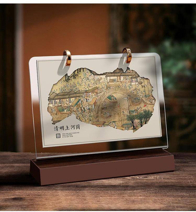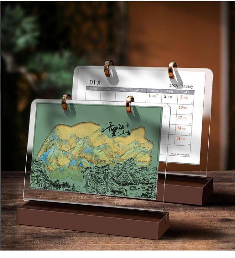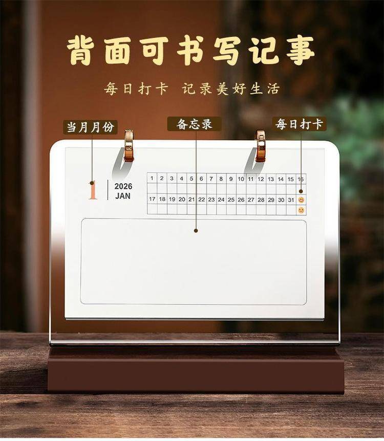 2026年企业高档木质索引台历架 亚克力材质 中式古典风 可LOGO定制
