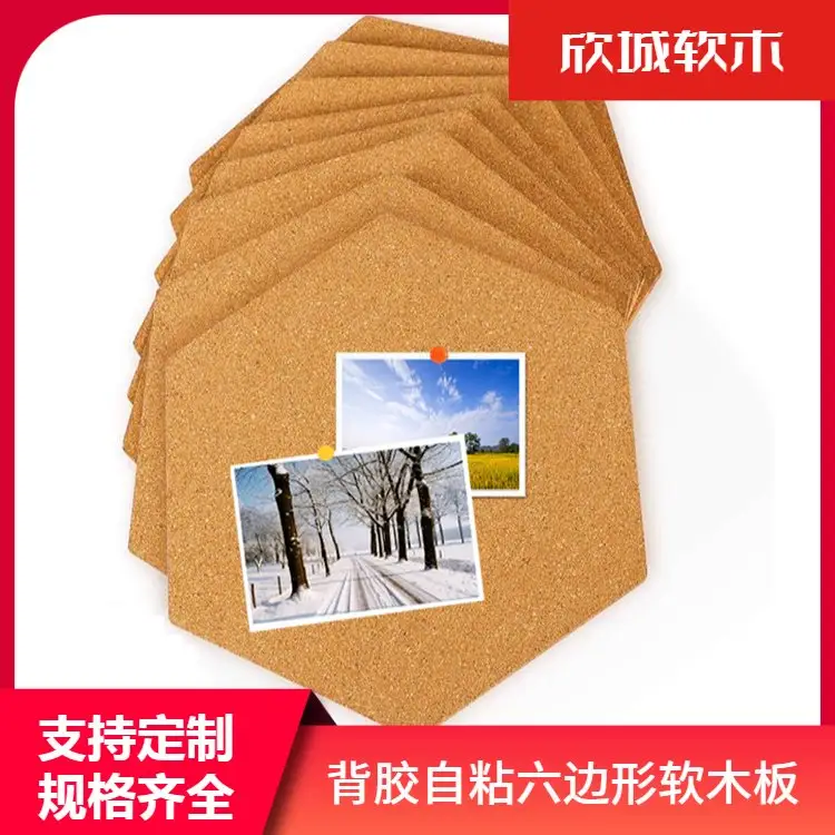 背胶六边形软木板照片墙图钉板水松板圆形留言板背景墙