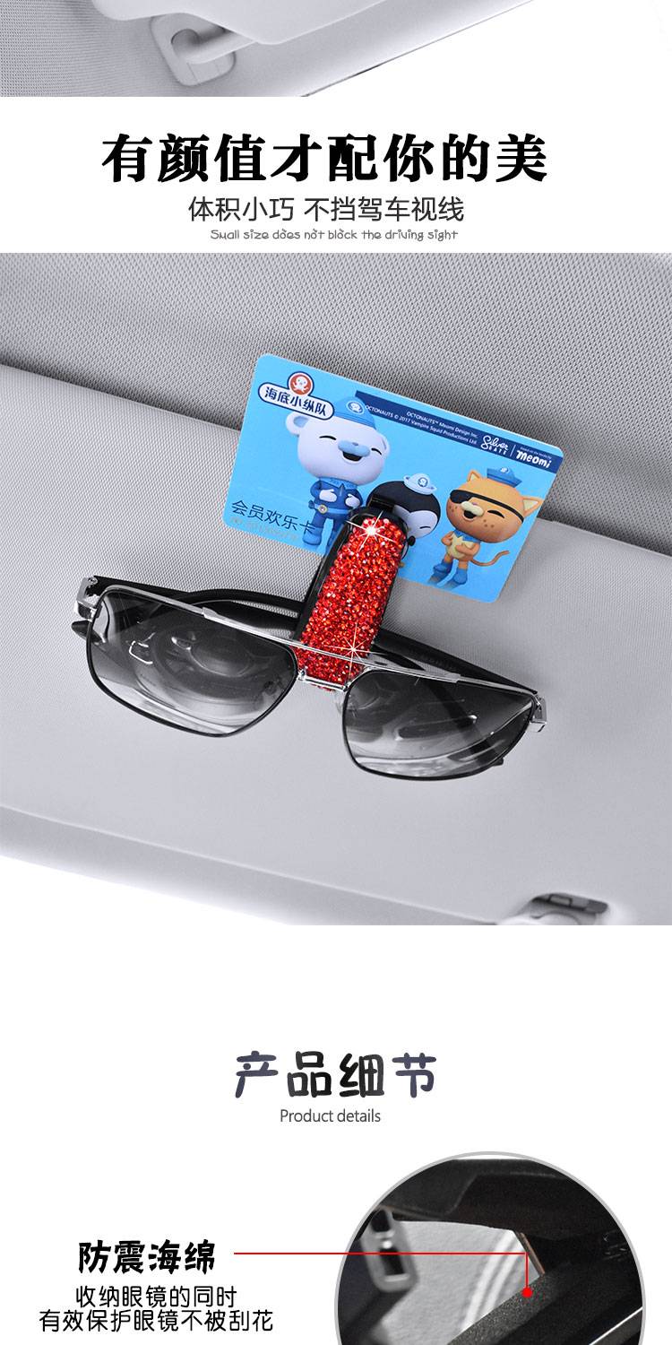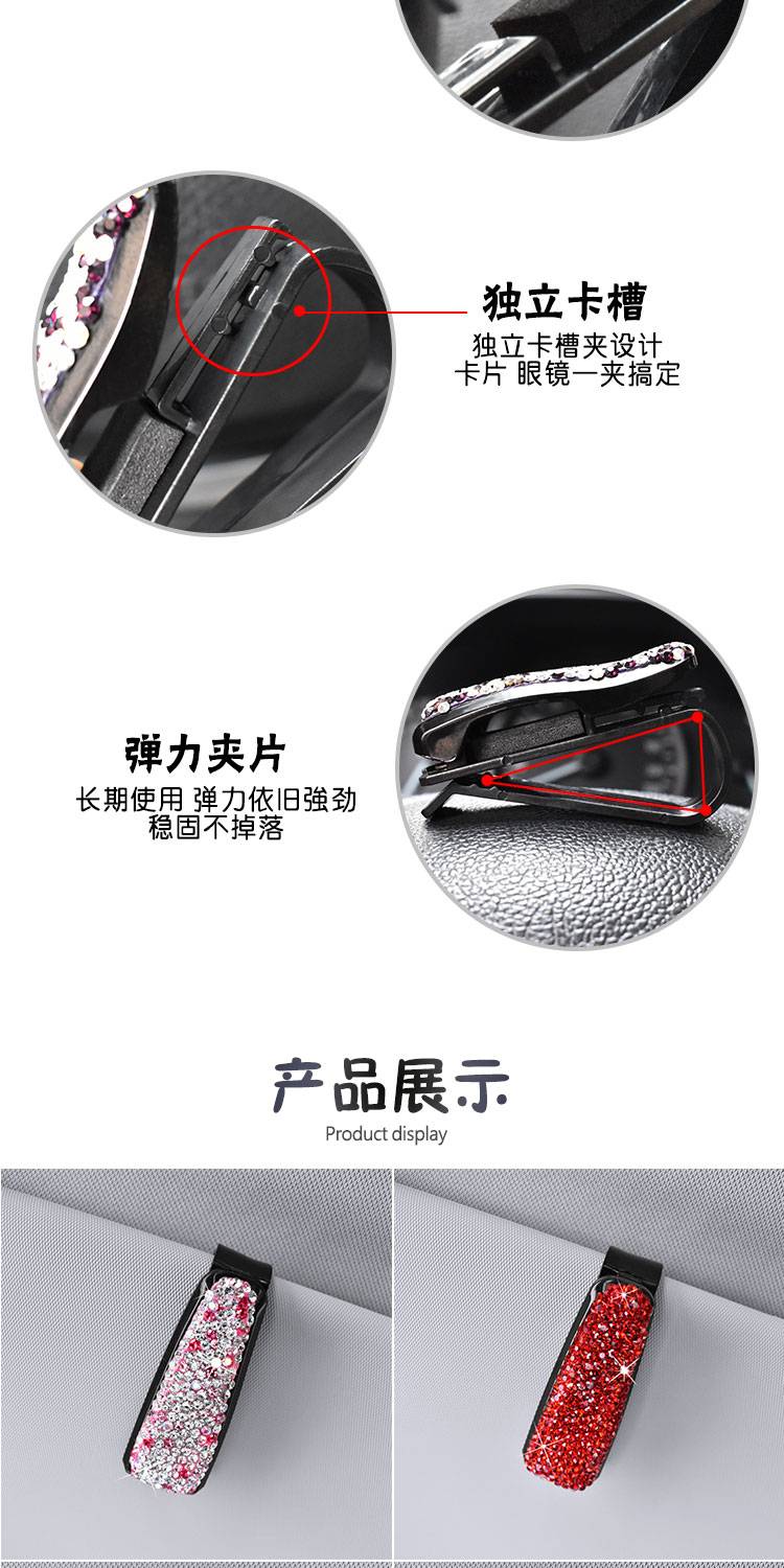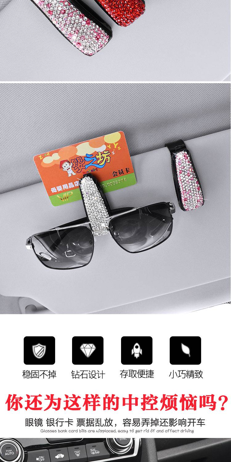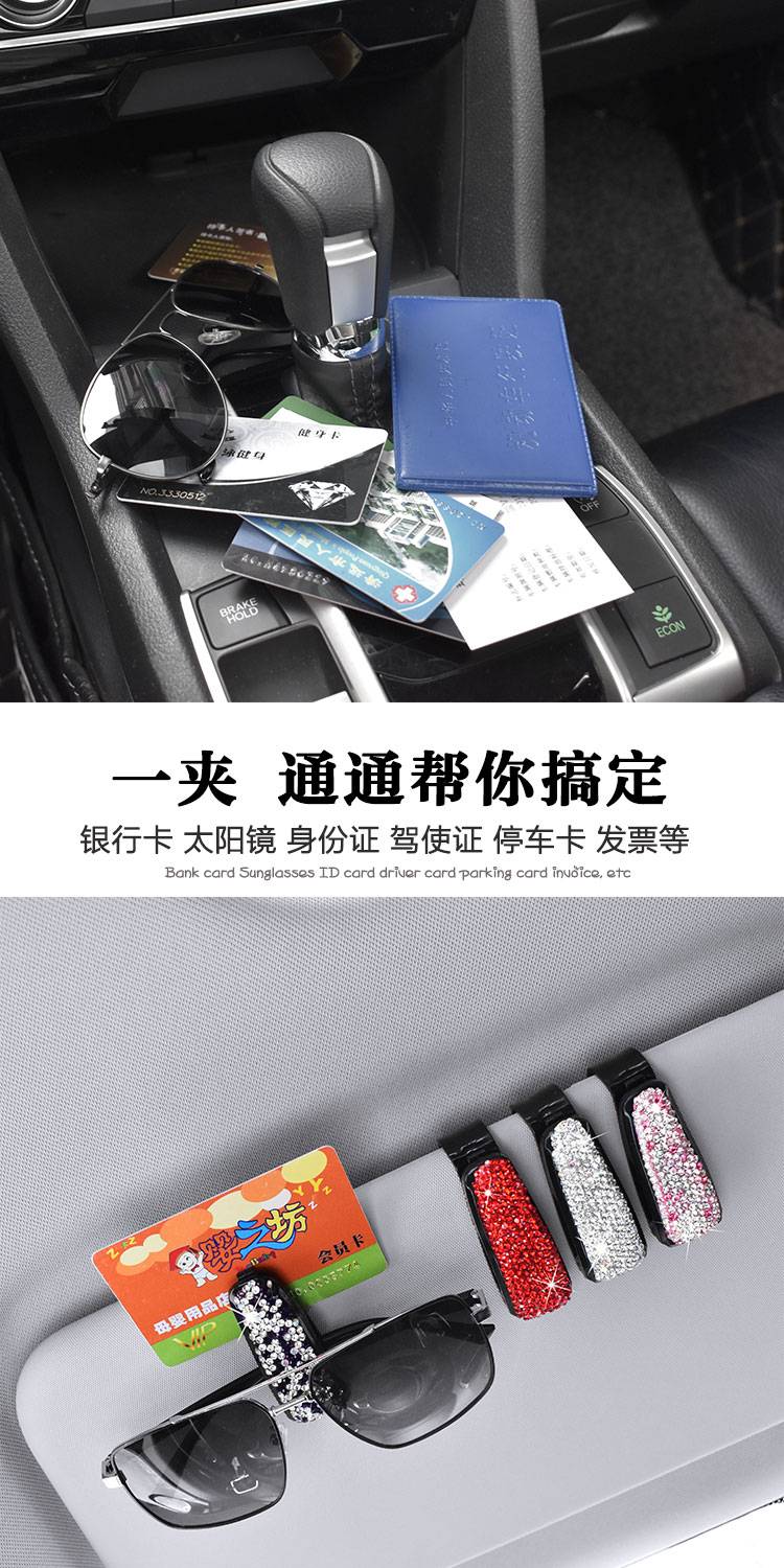 汽车眼镜夹多功能可爱镶钻车载车用车内遮阳板太阳镜支架票据夹