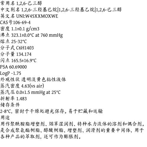 1,2,6-己三醇 106-69-4 用作聚酰胺脂增塑剂 湿润剂 有机试剂