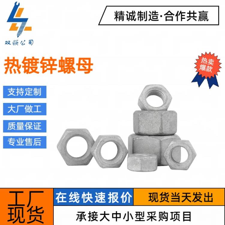 双领供应 热镀锌螺母 热浸锌高强度光伏电力螺母 细牙粗牙镀锌