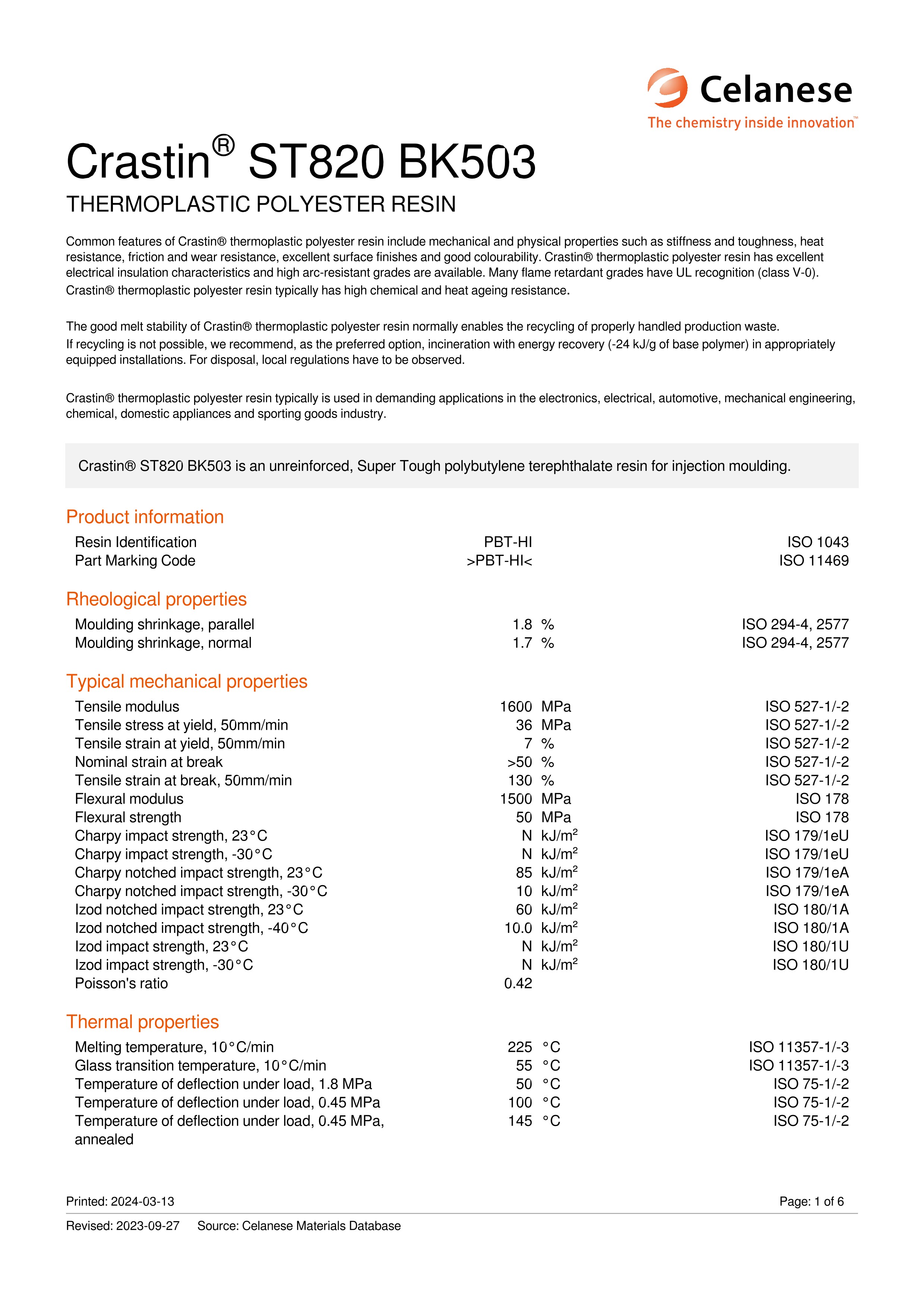 美国杜邦 Crastin® PBT ST820 NC010 高冲击 热塑性聚酯