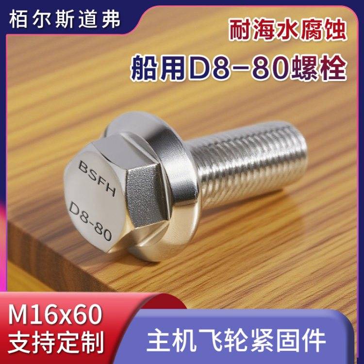 双相钢船用螺栓 D8-80 M16×60 主机飞轮法兰面紧固件 耐海水腐蚀 现货