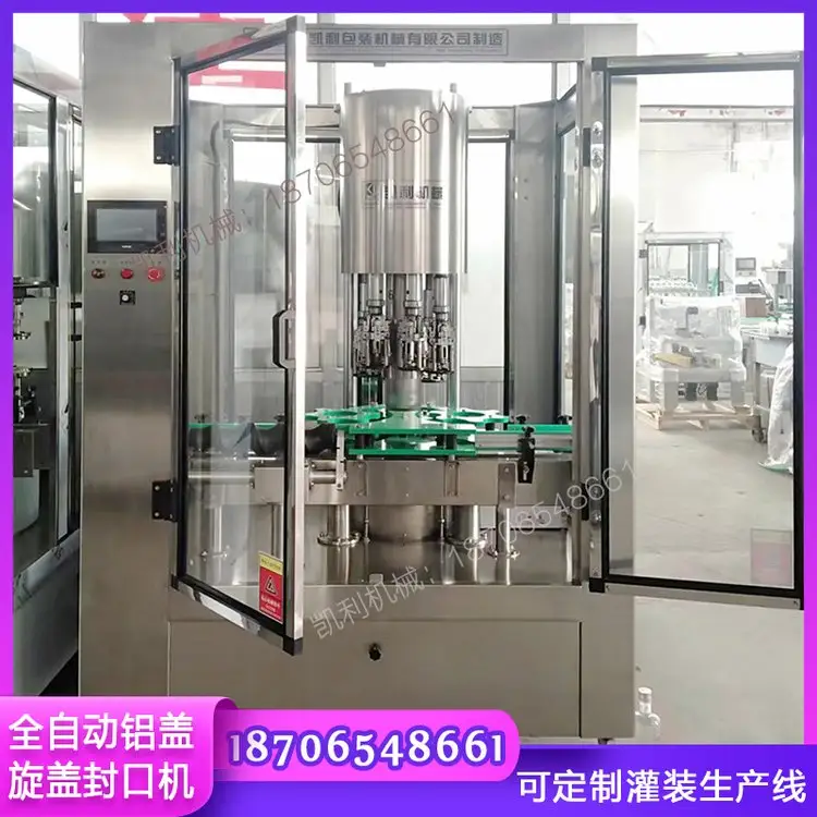 全自动螺纹铝盖旋盖机 橄榄油瓶旋盖锁口机 口服液灌装、轧盖生产线