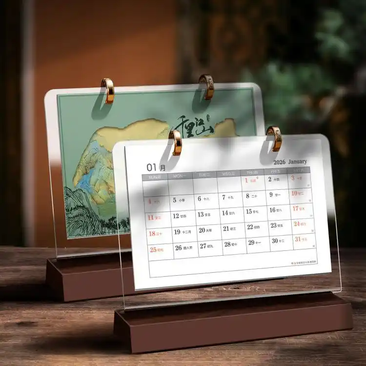 2026年企业高档木质索引台历架 亚克力材质 中式古典风 可LOGO定制
