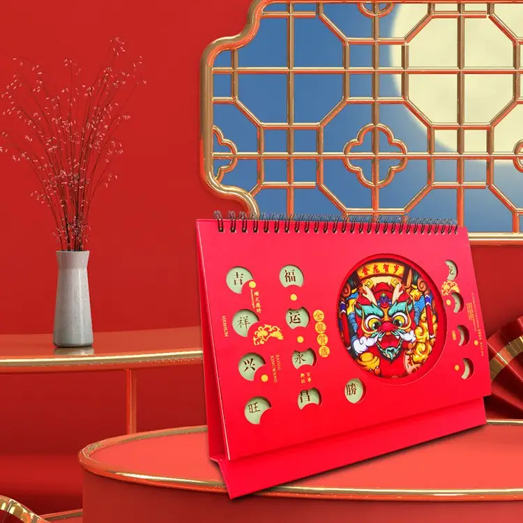 台历制作厂 2024龙年横架立体工艺烫金桌面竖版日历定制广告LOGO