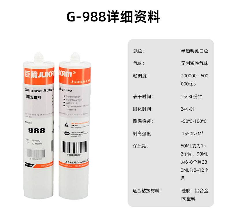 硅胶粘铝合金不锈钢专用强力硅胶胶水食品级胶水巨箭G-988景舜