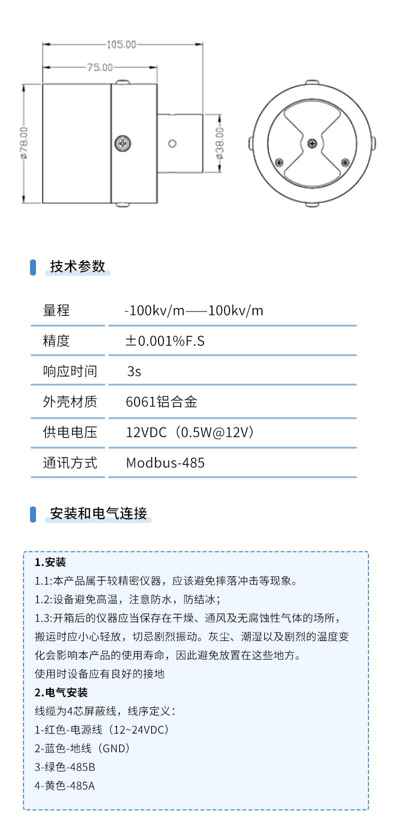 地面场强仪 大气电场探测仪 风途科技 电场检测传感器 石油化工雷电