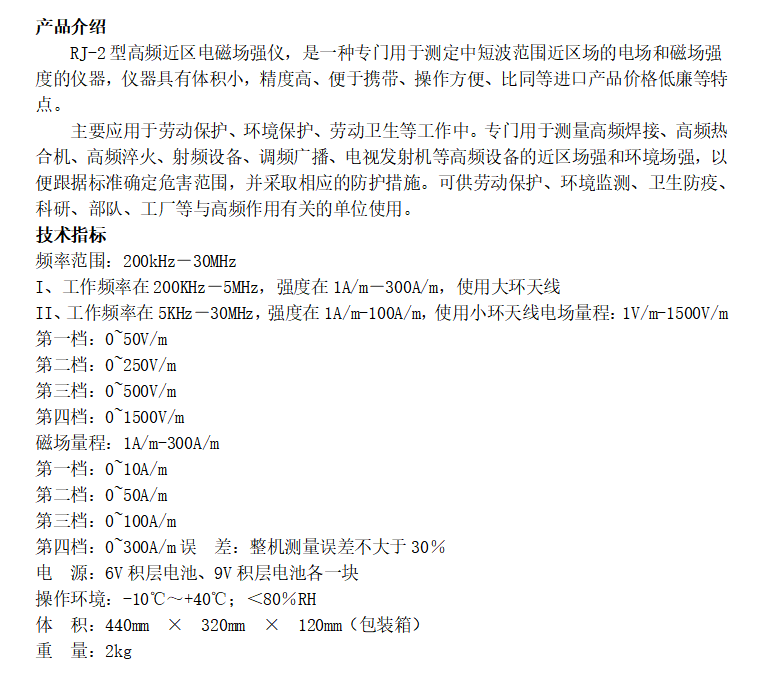 RJ-2高频(近区)电磁场测量仪 场强仪 磁场检测仪