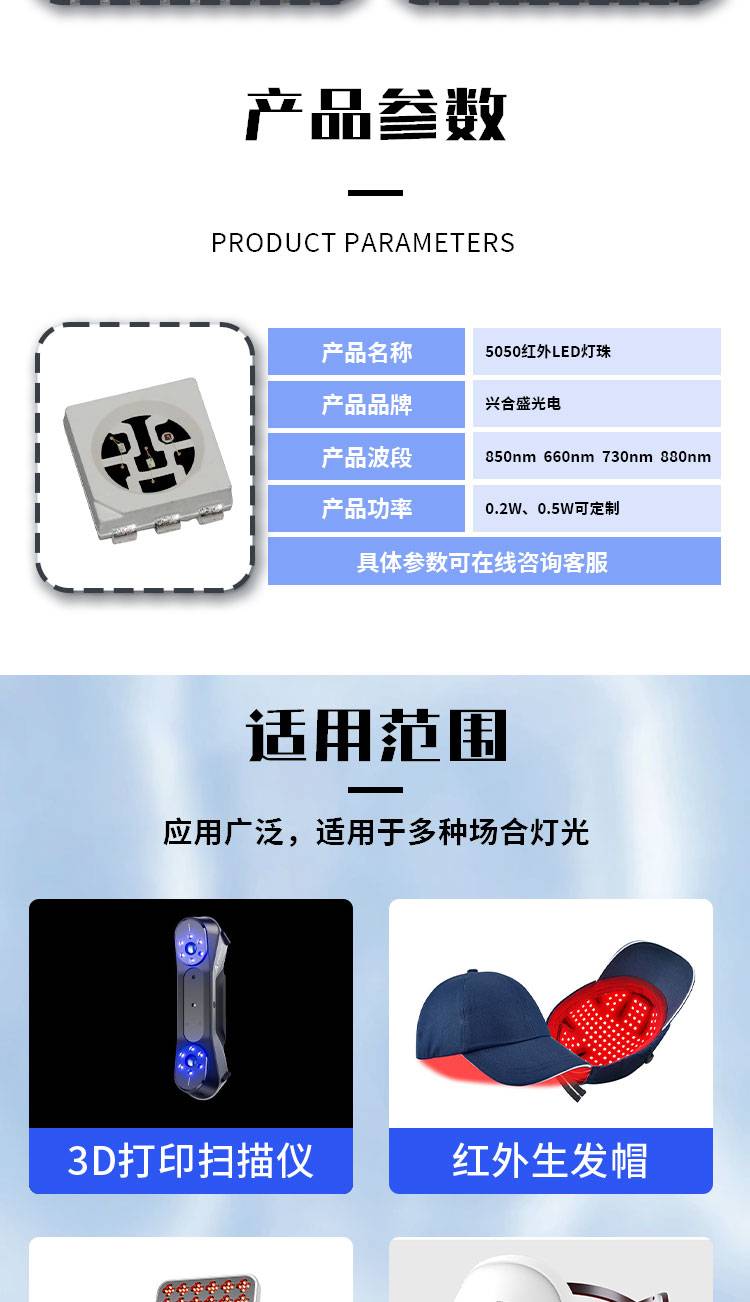 红外线理疗LED灯珠850nm 660nm 五合一灯 兴合盛 现货