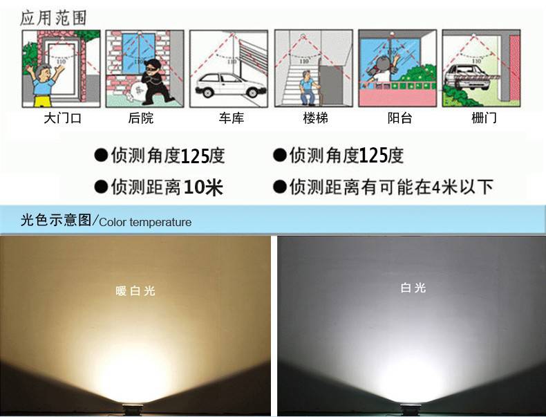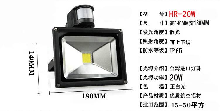 led红外线人体感应灯户外防水庭院灯楼道路灯车库防贼监控补光灯