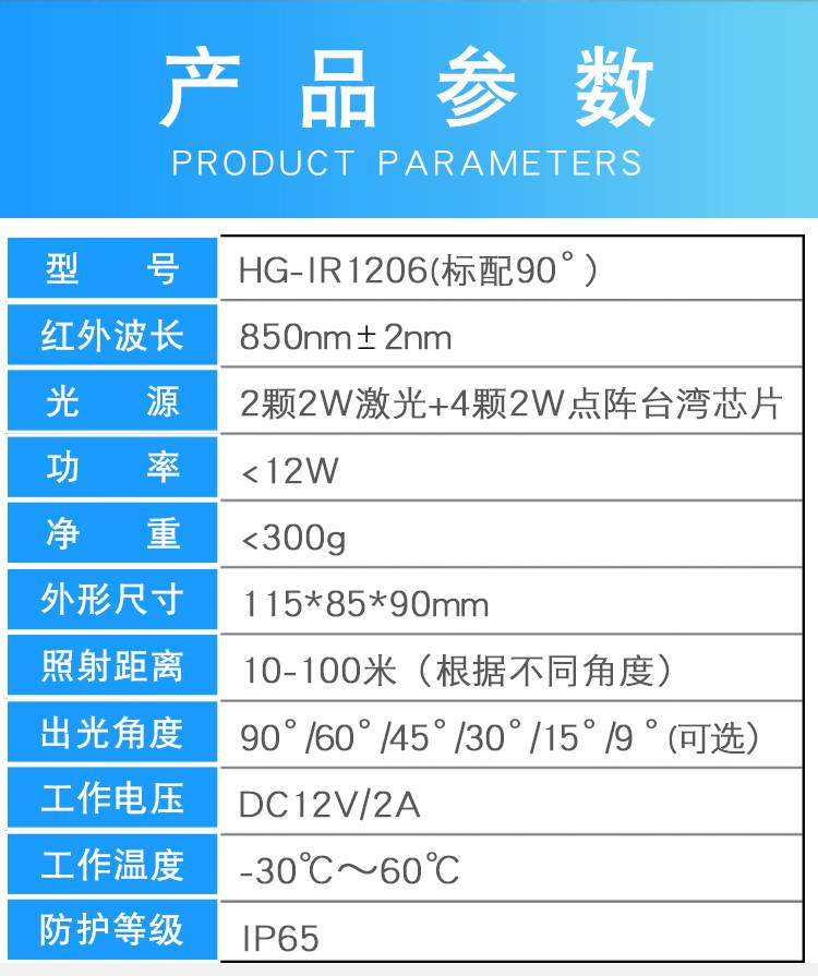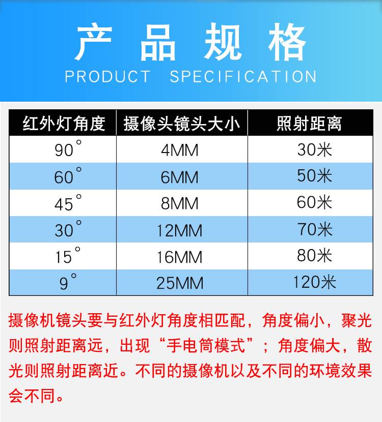 激光点阵红外线灯夜视100米监控补光灯LED自动感应灯摄像头辅助灯
