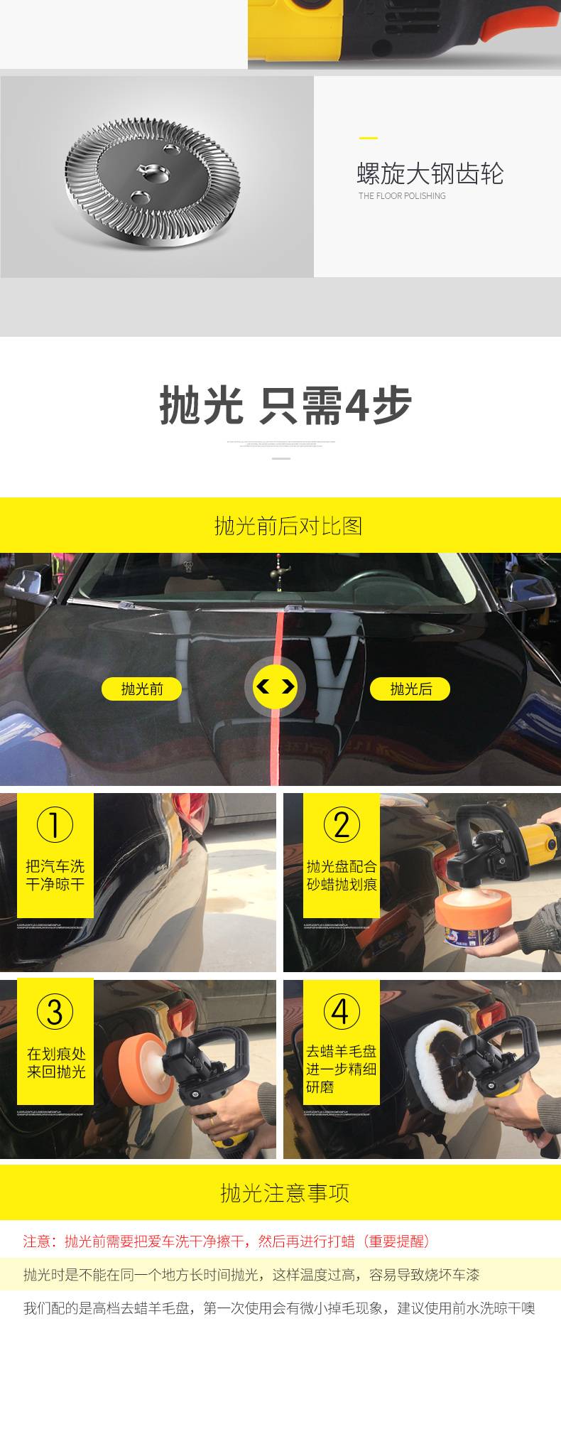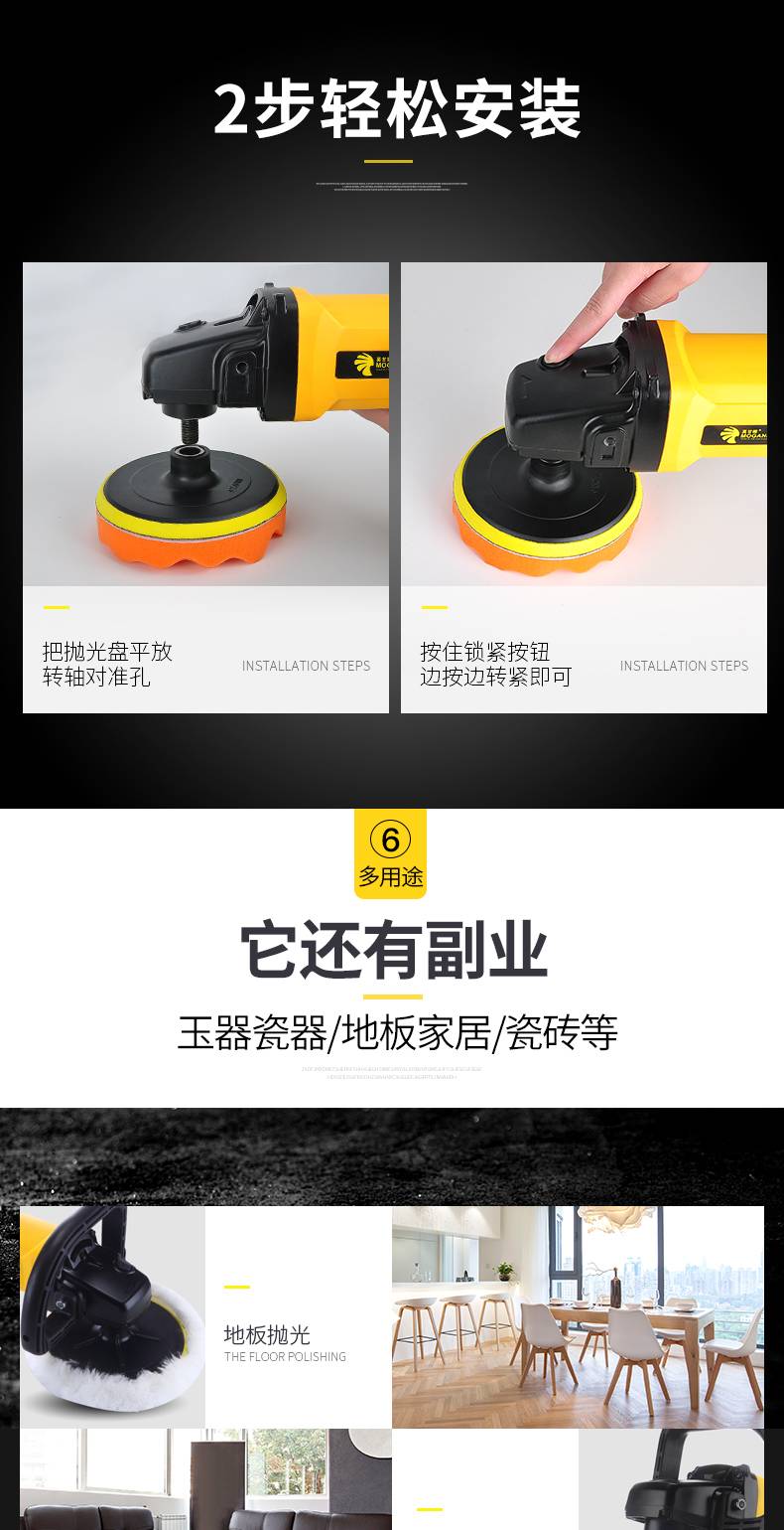 汽车抛光机电动打蜡机220v小型车用打腊漆面车蜡车漆美容打磨神器