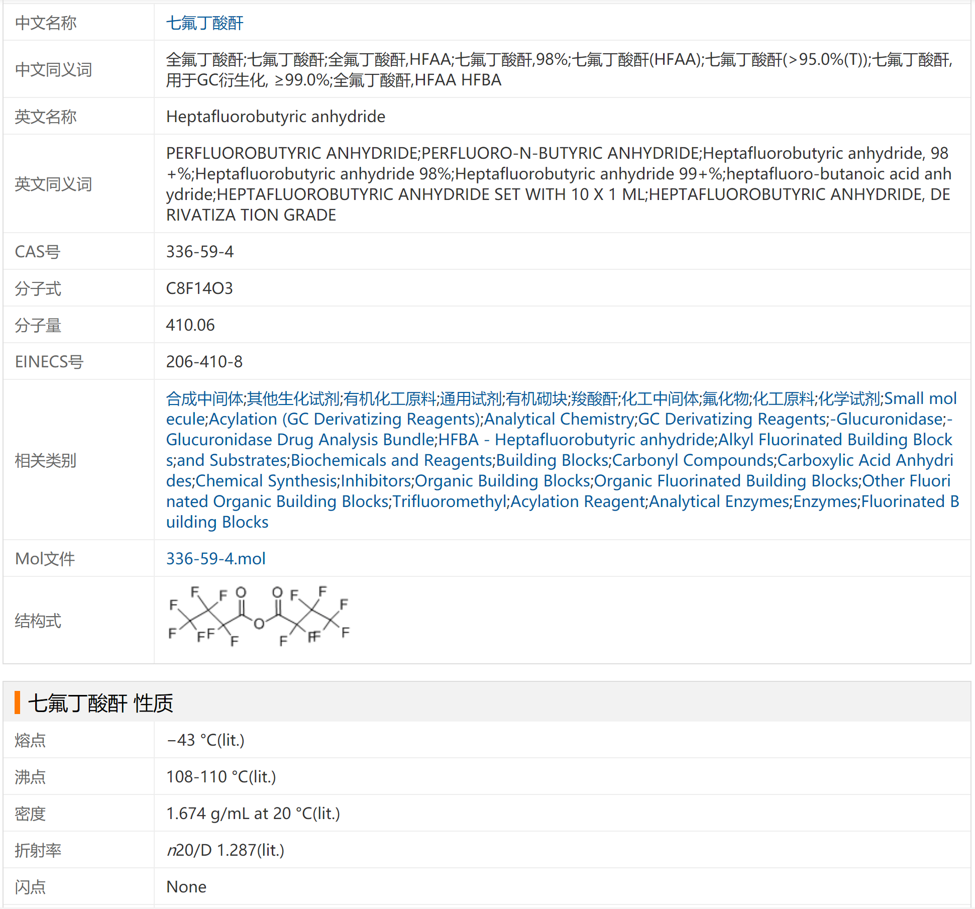 七氟丁酸酐 336-59-4 含量97% 气相色谱 衍生化试剂 酰化试剂
