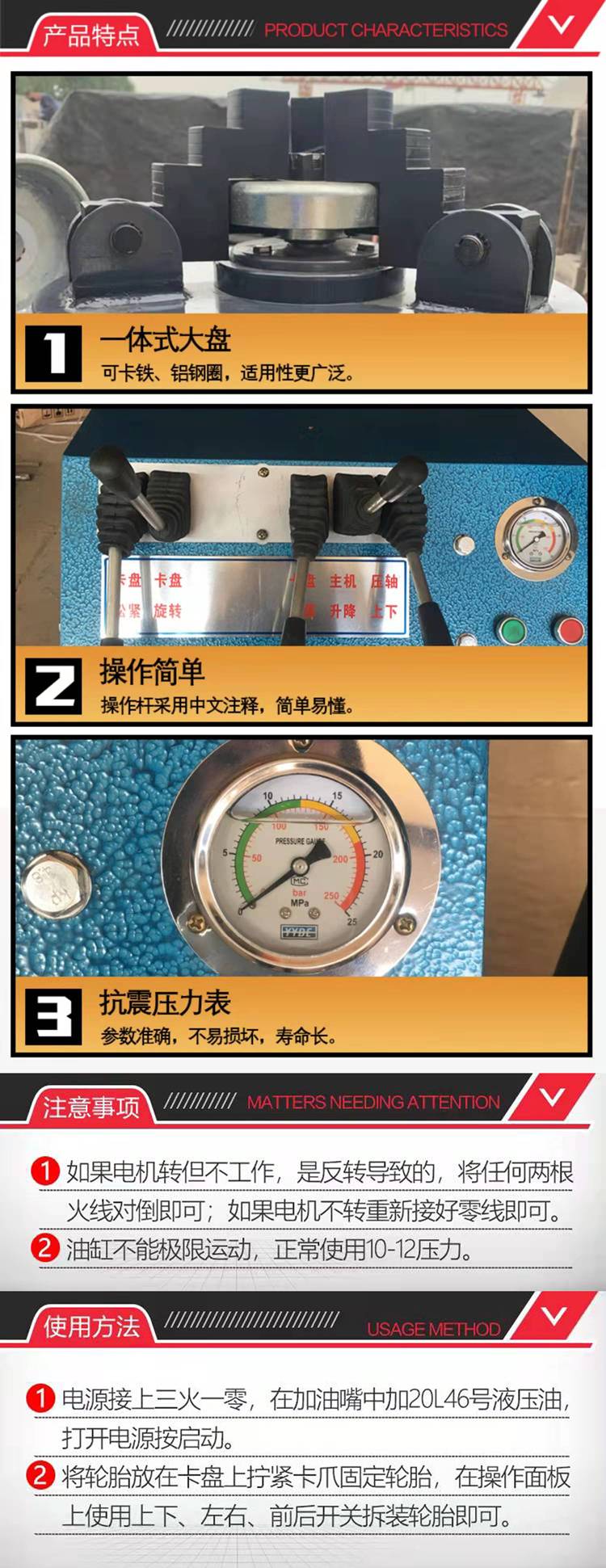 卡车客车轮胎拆装机 立式电动液压轮胎装卸机 运行平稳肃静
