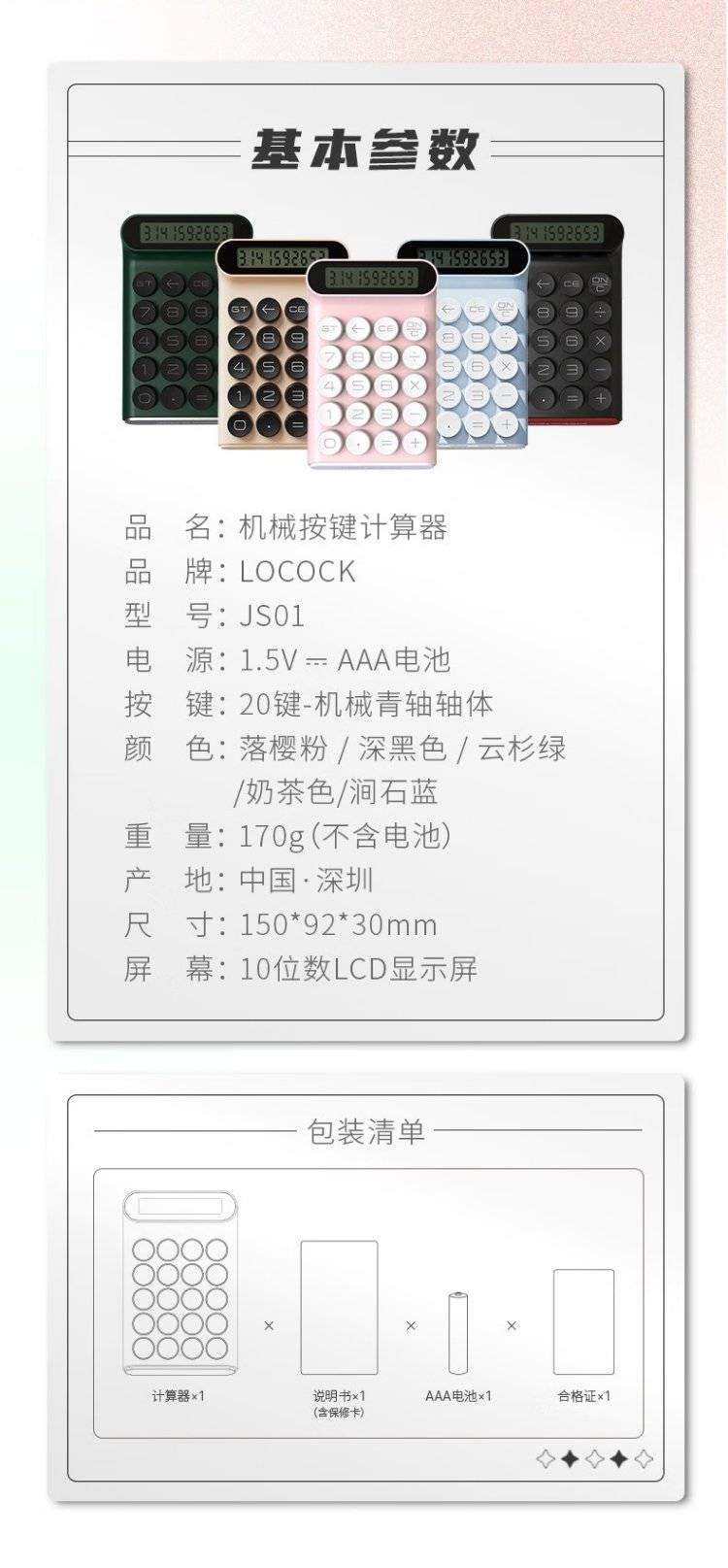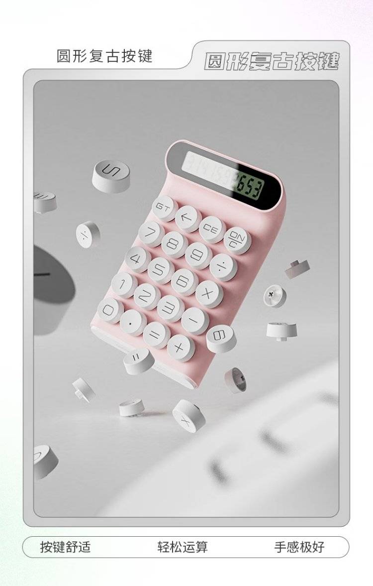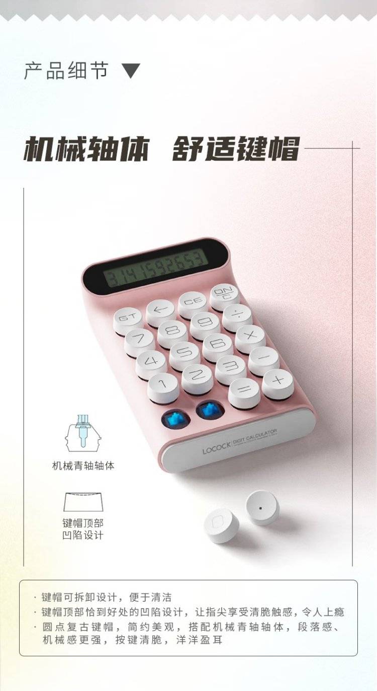 LOCOCK 机械按键计算器办公桌面小型手持可爱复古按键电子计算器
