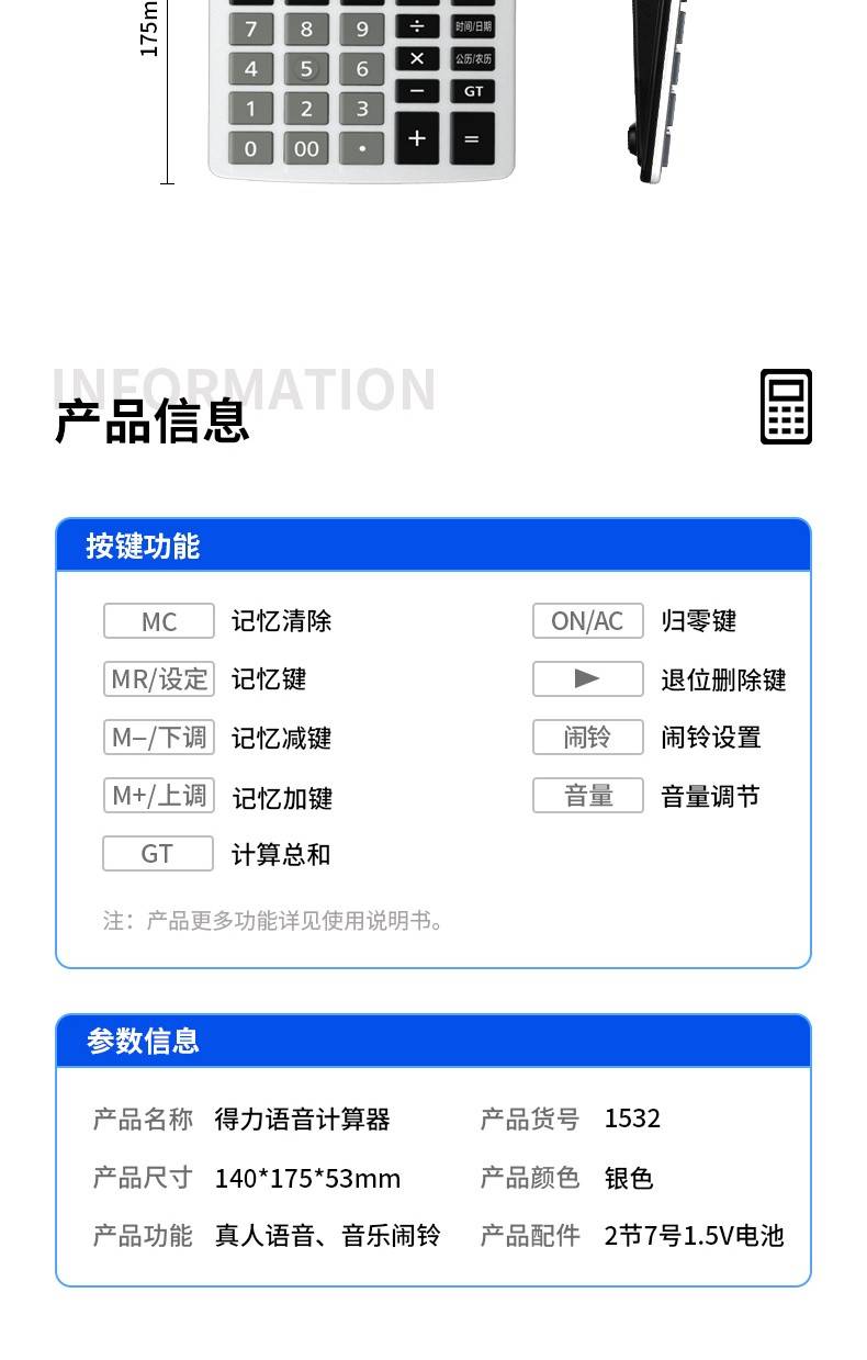 得力(deli)1532 语音计算器 12位大屏幕计算机 真人语音