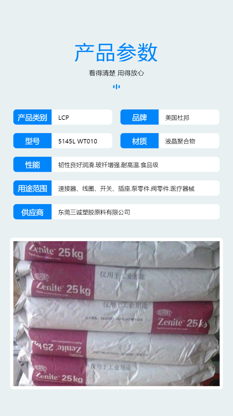 Zenite美国杜邦LCP 5145LBK 玻纤增强 润滑性 高韧性 液晶聚合物
