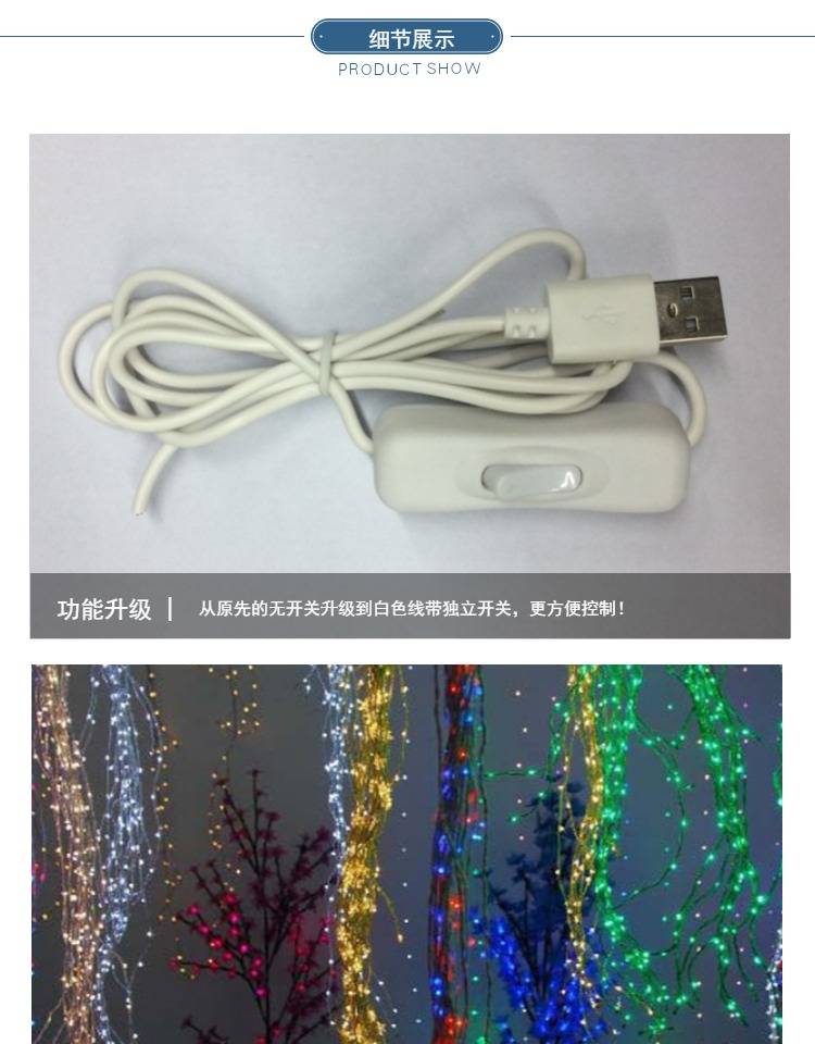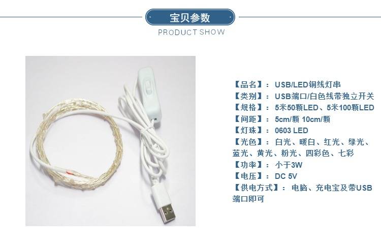 USB灯串LED铜线灯串独立开关 节日婚庆露营装饰灯串防水七彩灯串