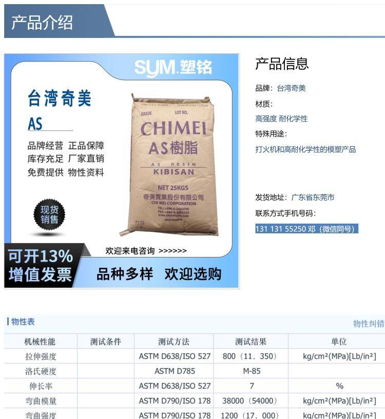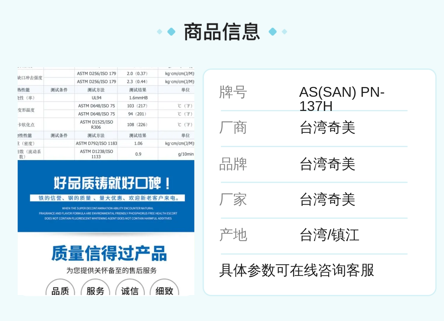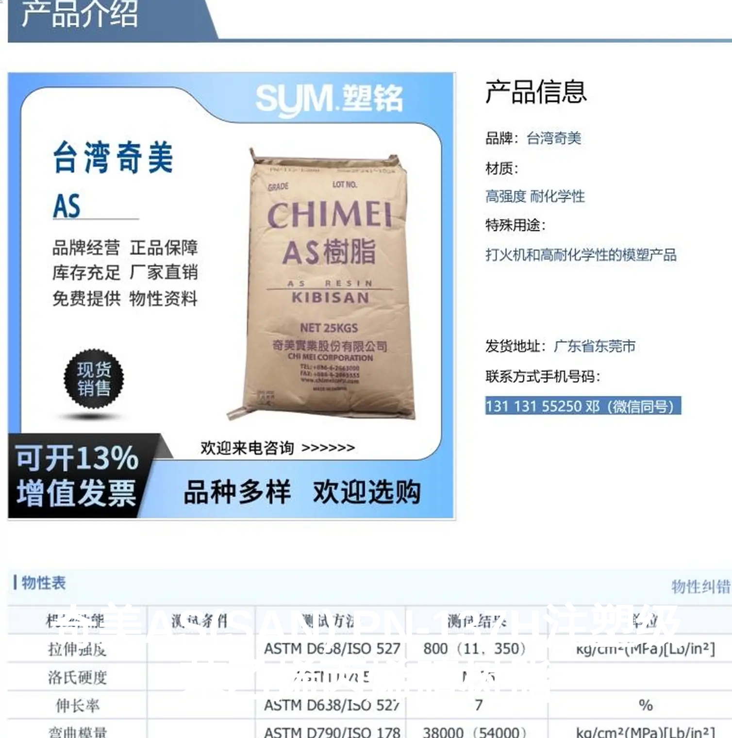 奇美AS(SAN) PN-137H注塑级苯乙烯丙烯腈树脂