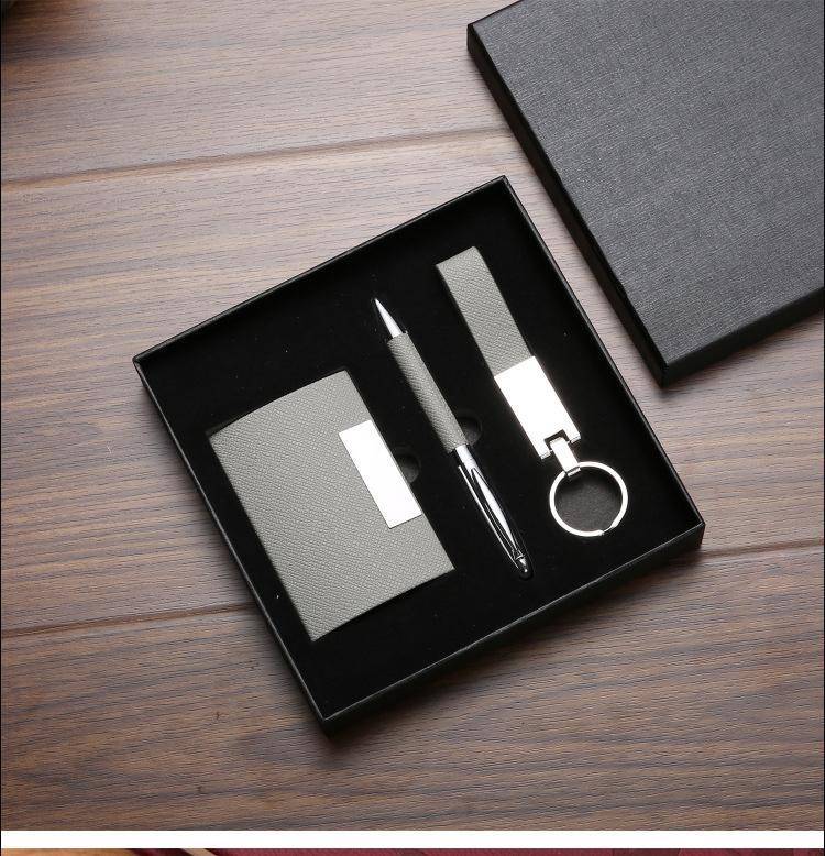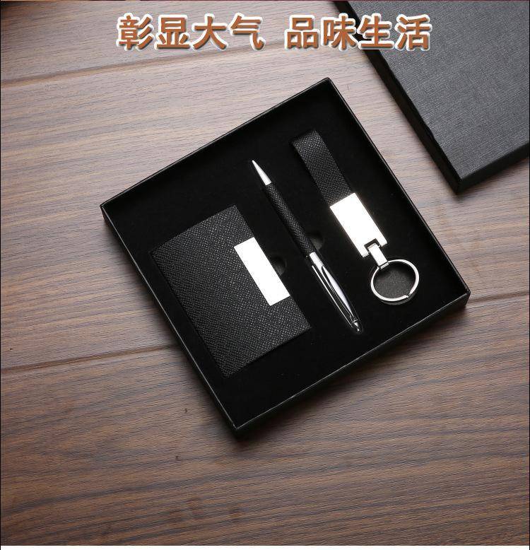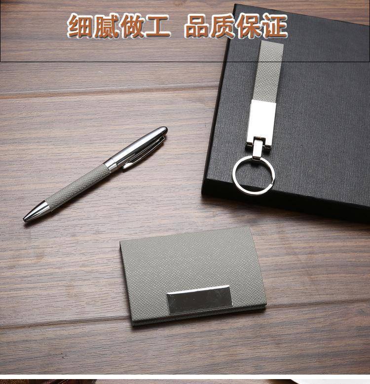 精美名片夹钥匙扣+pu金属笔现货名片盒套装logo商务办公礼品
