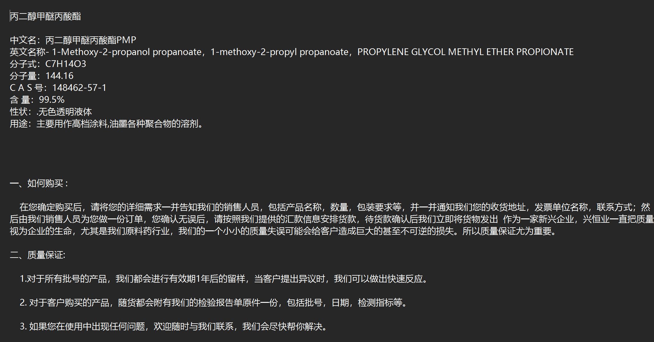 丙二醇甲醚丙酸酯 用作涂料等聚合物的溶剂 CAS148462-57-1