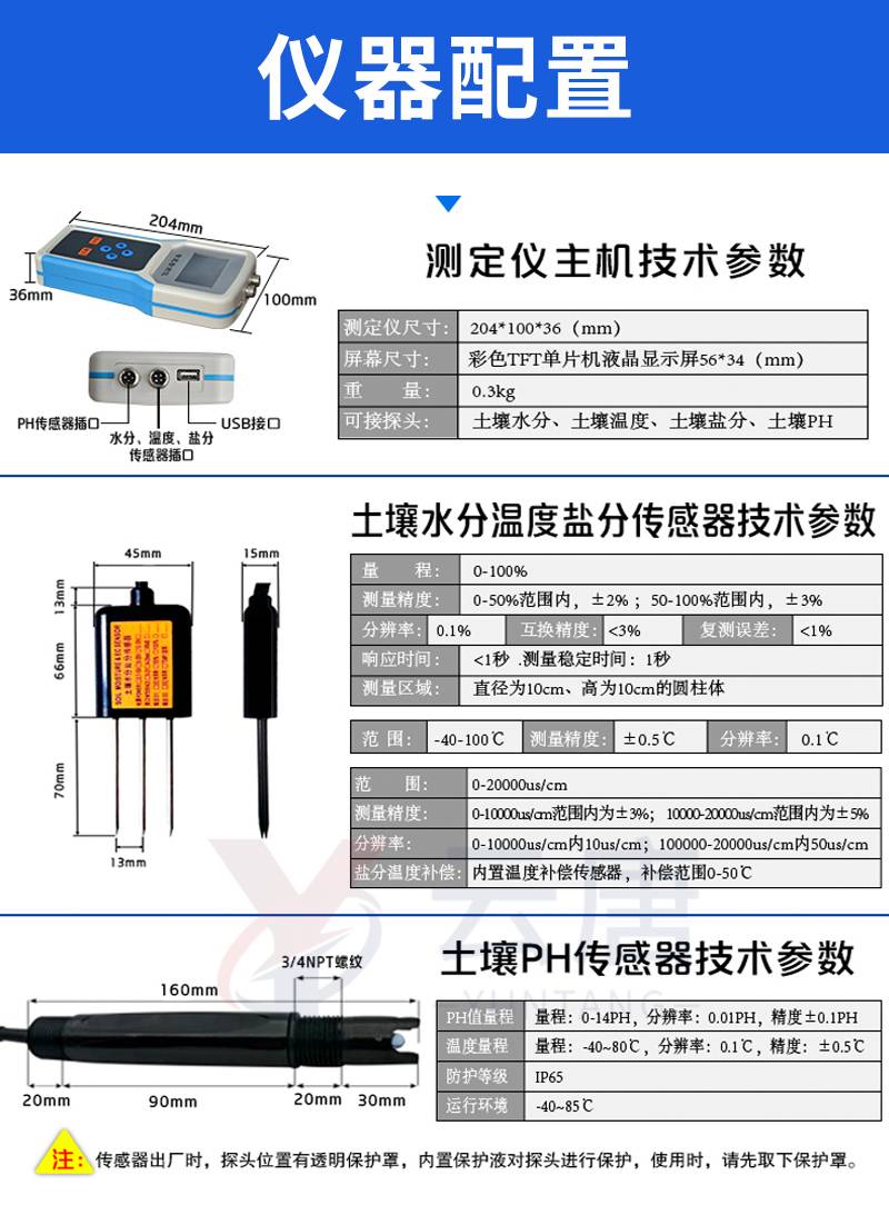土壤水分温湿度盐分电导率PH氮磷钾测定仪 云唐仪器 土壤墒情检测