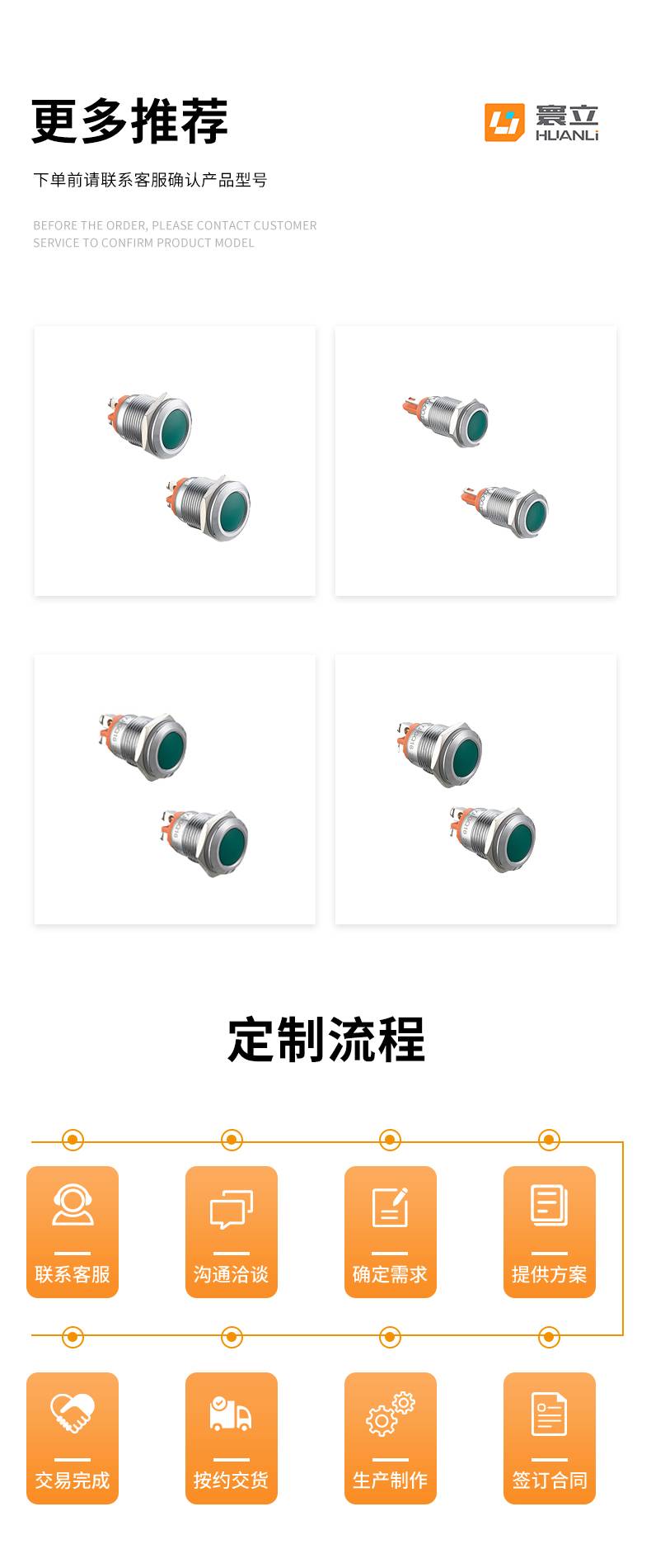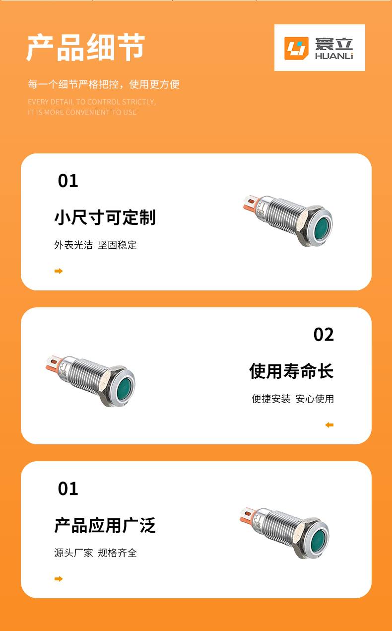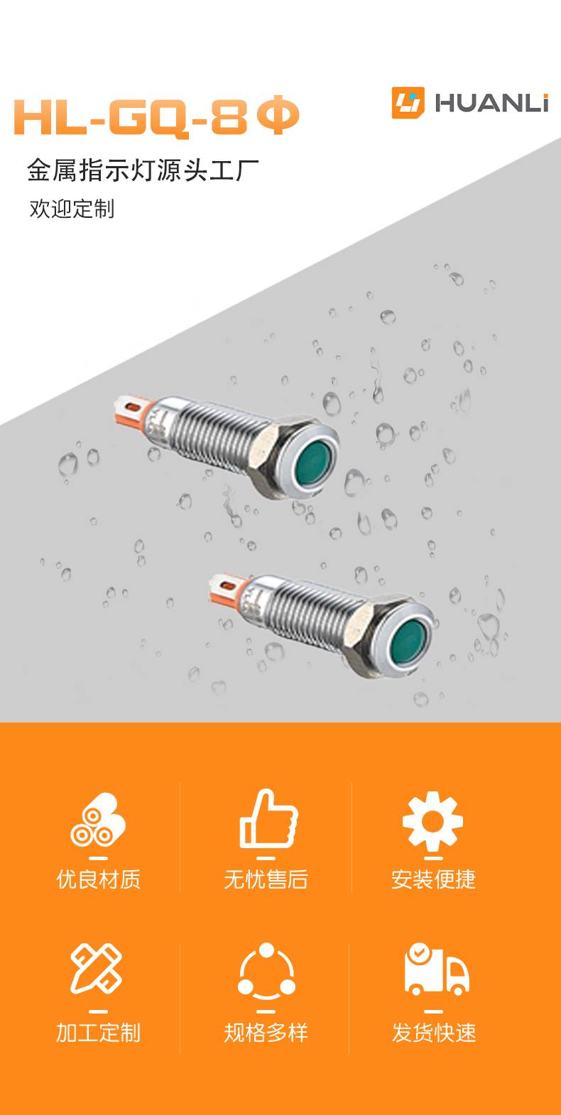 8MM金属防水信号指示灯LED单色发光照明IP65带引线按钮指示灯
