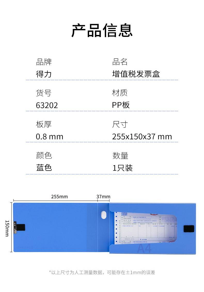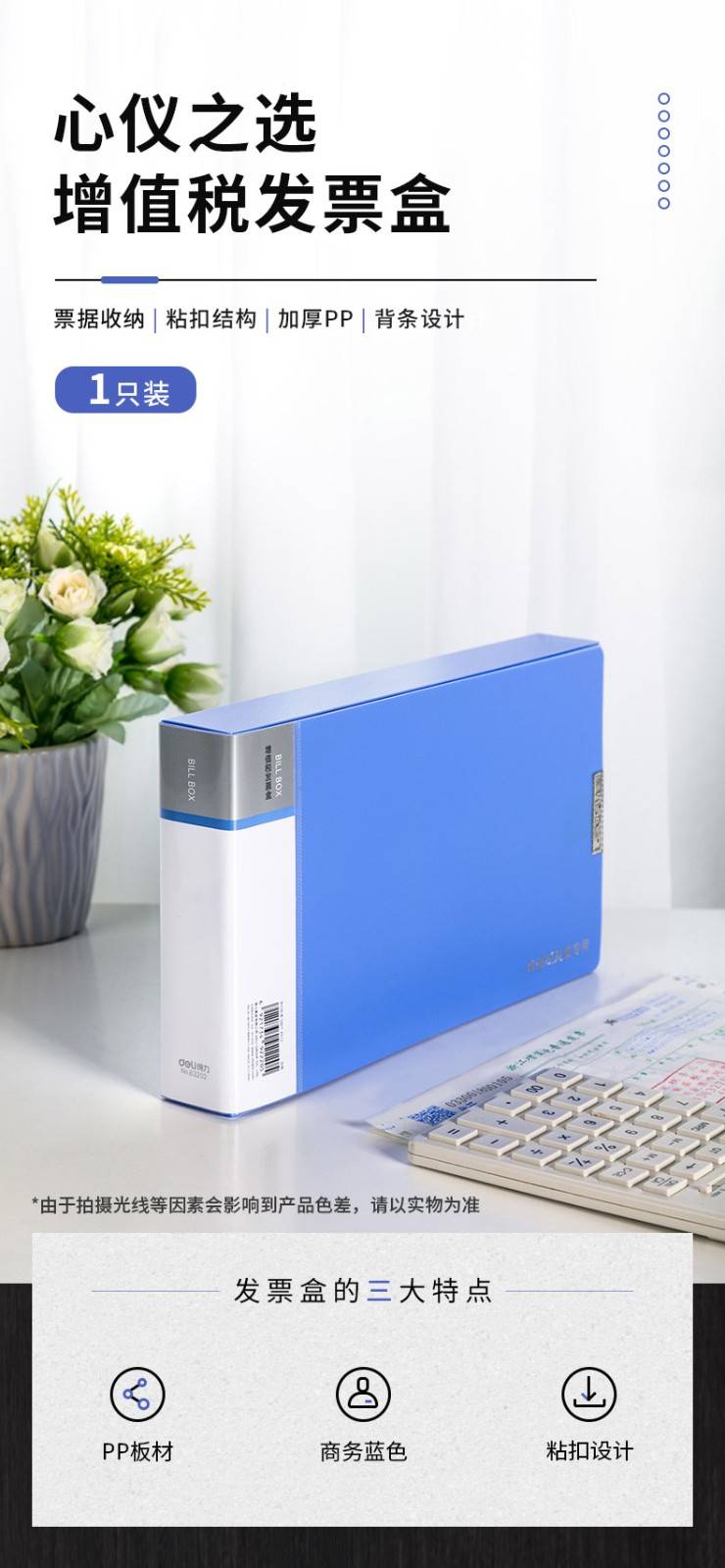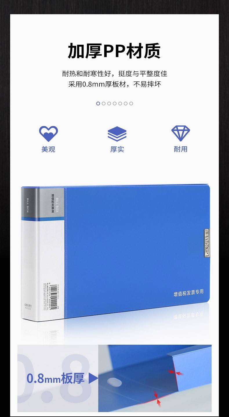 得力(deli)63202财务收纳盒票据盒 增值税发票专用票据夹 蓝色
