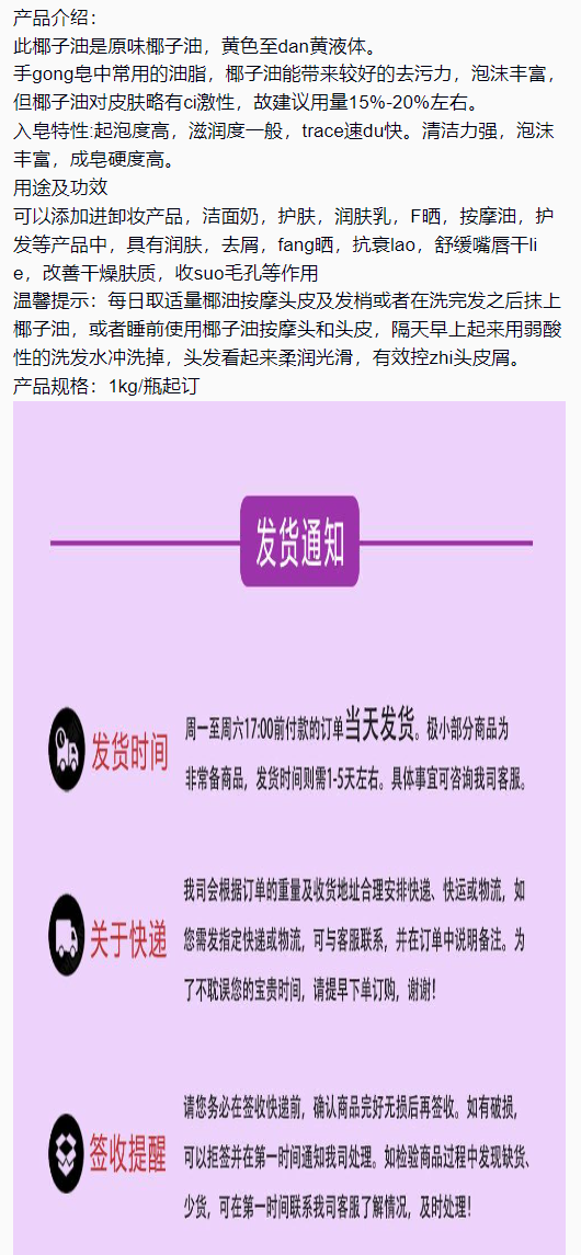 原香原味椰子油 卸妆乳 护发素 手工皂 护肤 化妆品原料 1kg