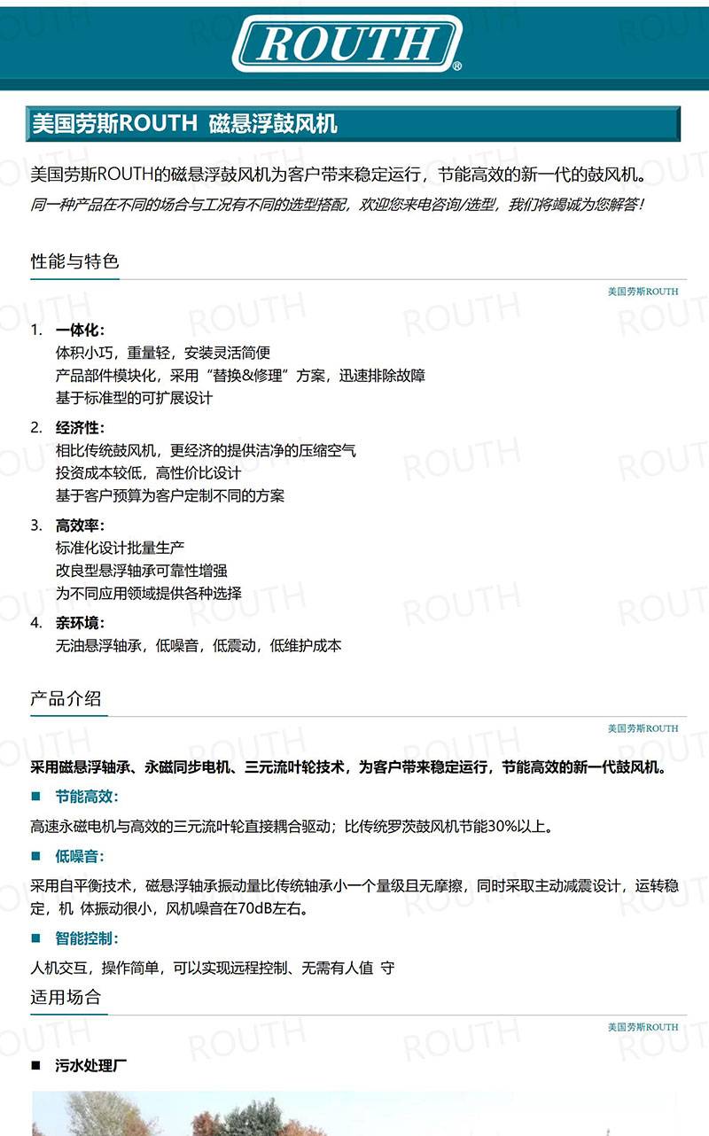 美国劳斯ROUTH进口磁悬浮风机-永磁-节能-鼓风机-空气悬浮风机