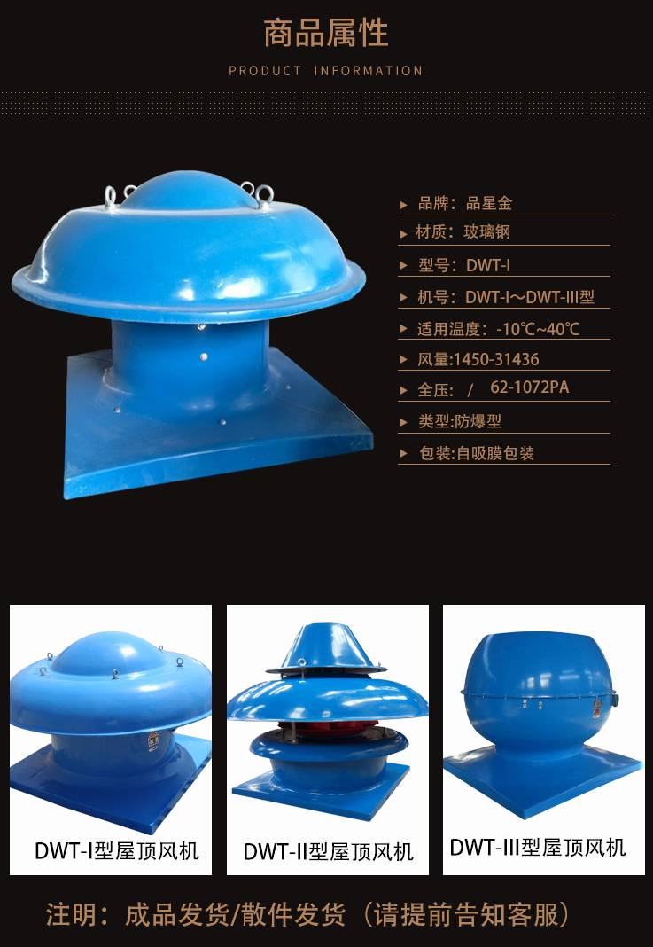 品星低噪音消防排烟通风机防腐防爆DWT玻璃钢屋顶离心风机