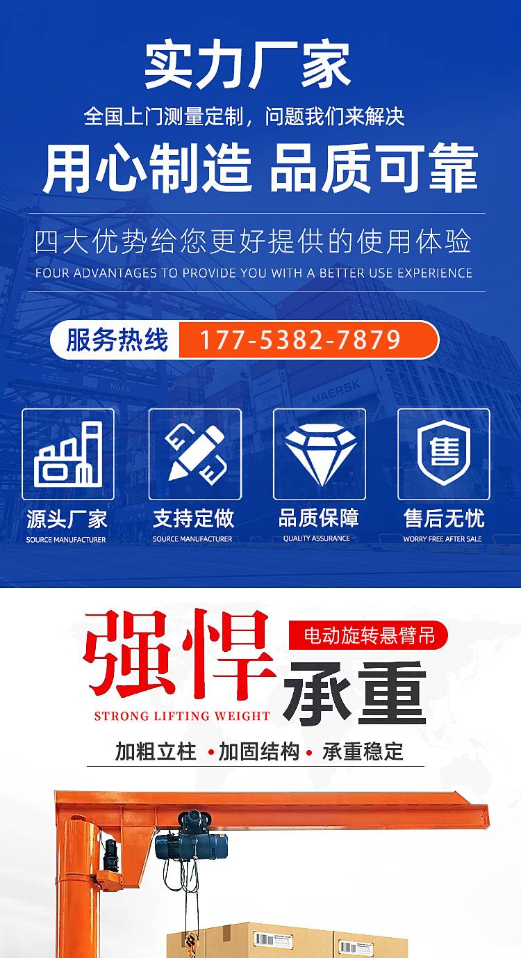 重型固定式旋转独臂机 钢结构臂身运行平稳 满足频繁重载作业需求