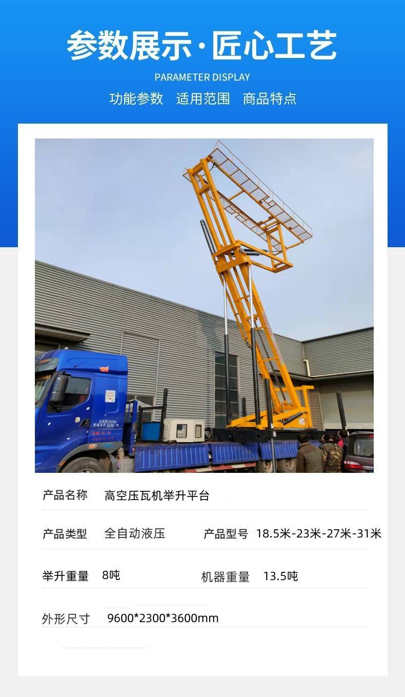 32米高空压瓦机 钢结构屋面作业平台 车载式高空举升机