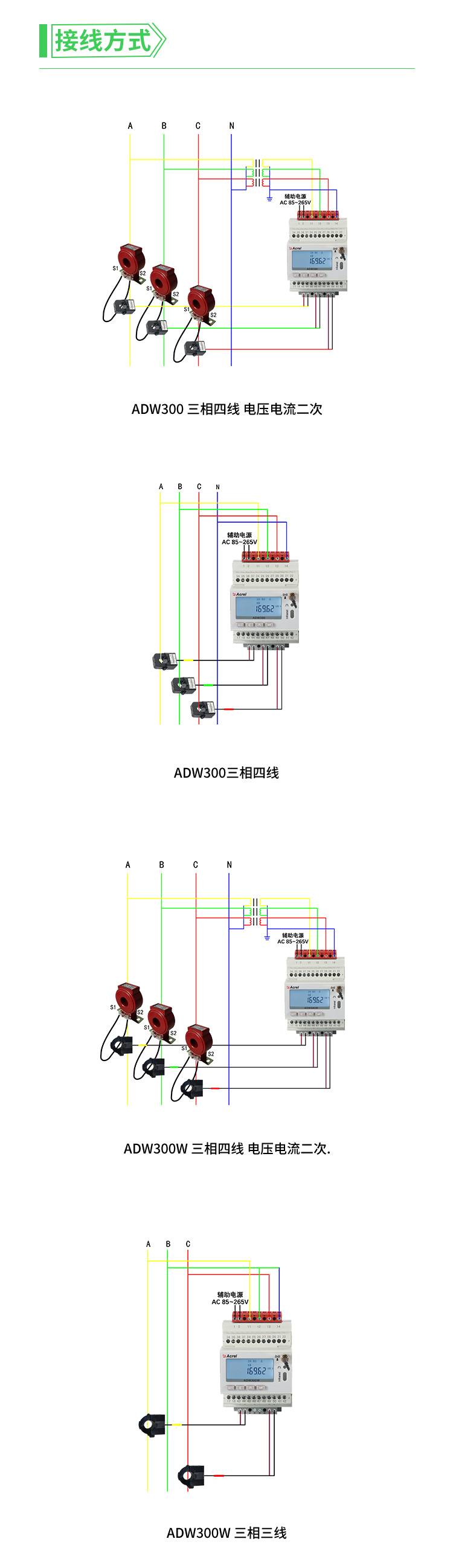 安科瑞ADW300W带开口互感器物联网电表适用二次互感改造项目