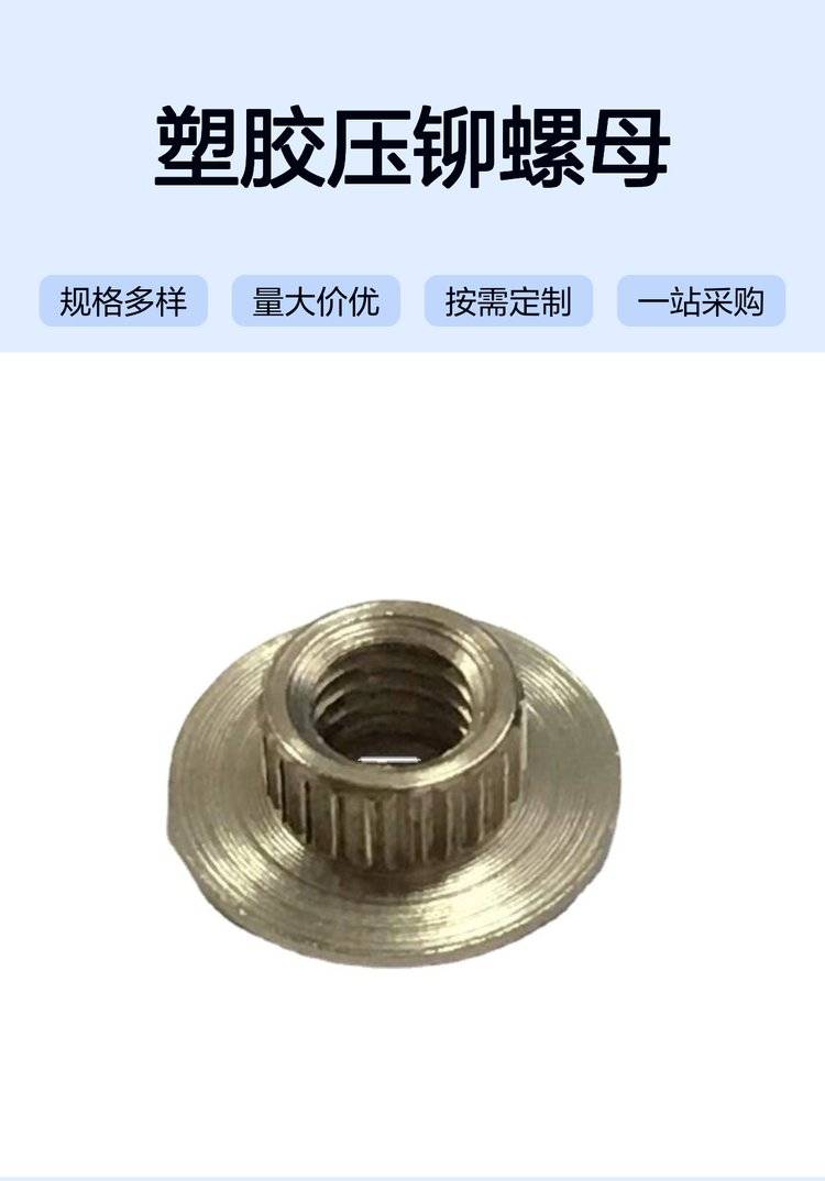 直齿M4塑胶压铆螺母 拔丝内牙滚花设计 卡紧牢固尺寸稳定
