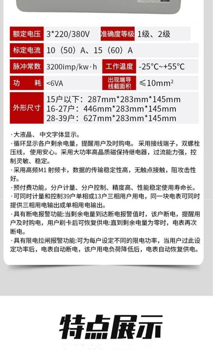 宾馆公寓用智能刷卡预付费多用户电表 10-60A集中式电能表 电度表