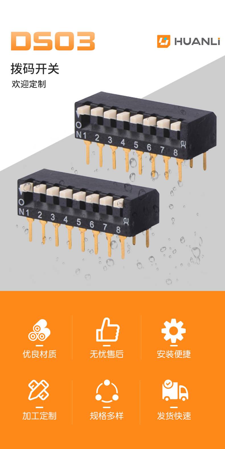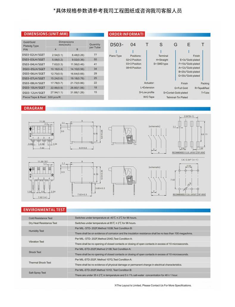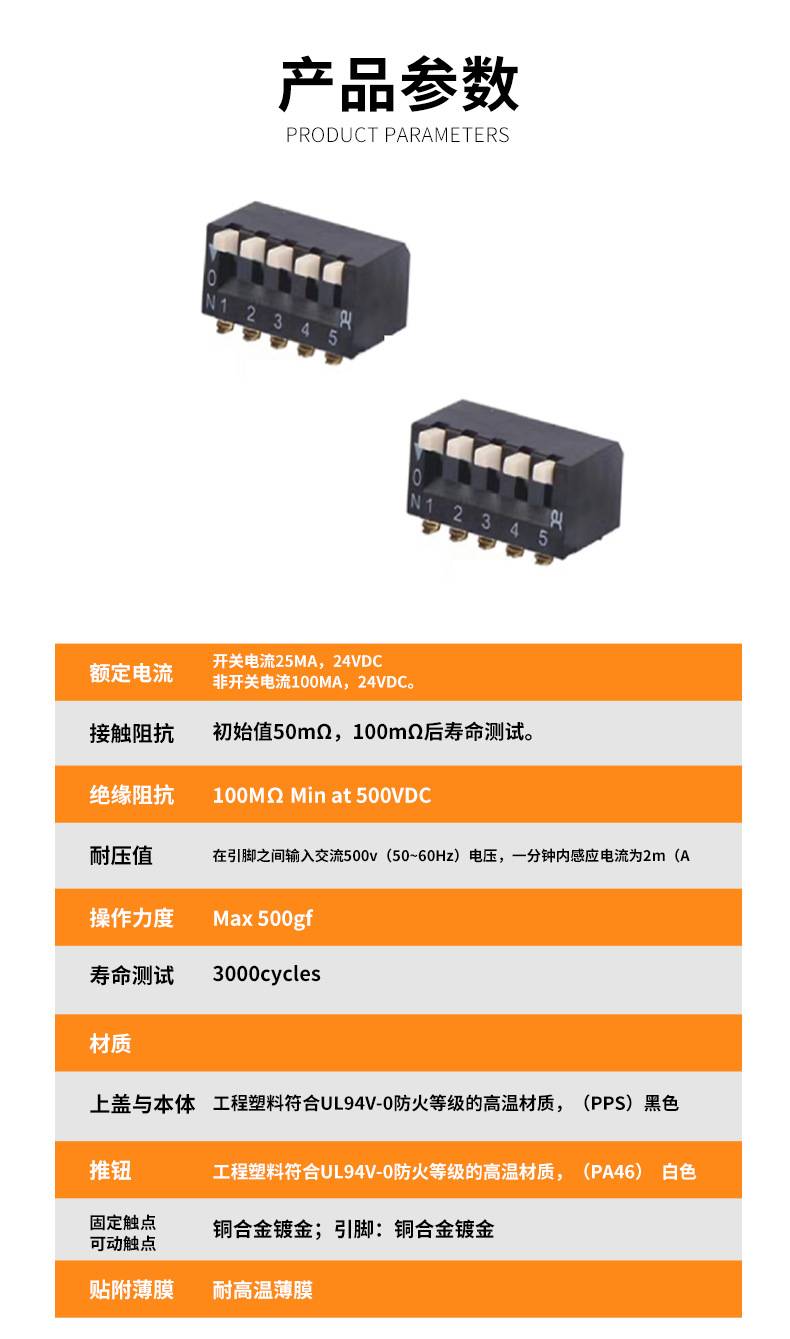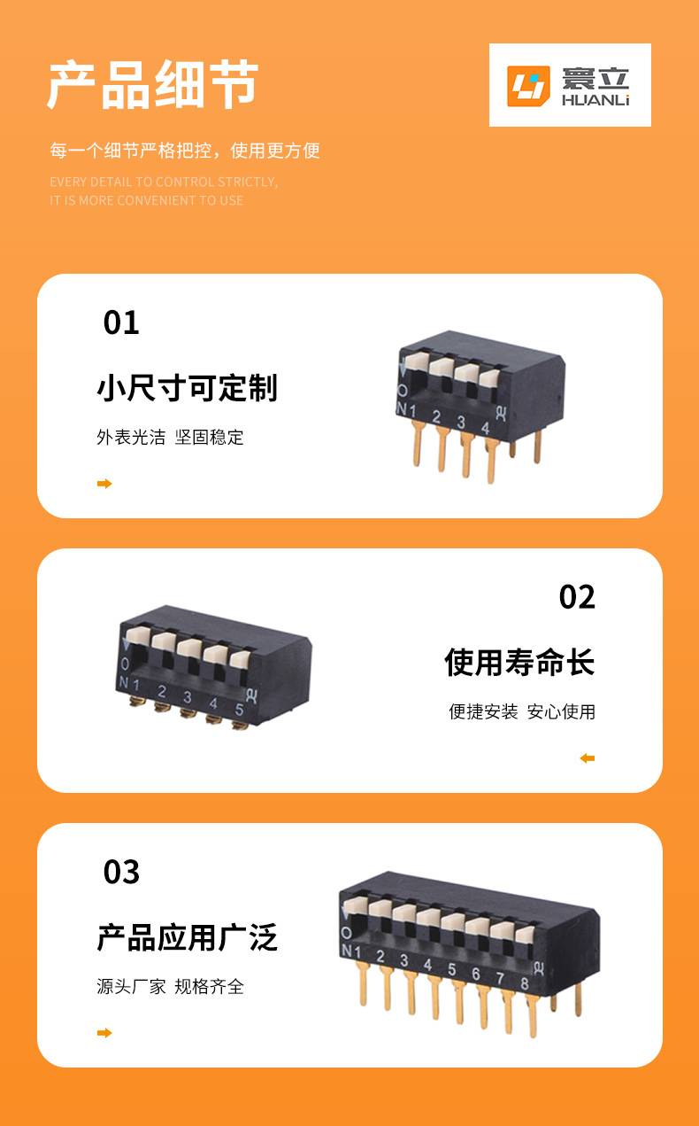 黑色琴键式侧拨拨码开关 指拨开关 2.54脚距 可耐高温 环保