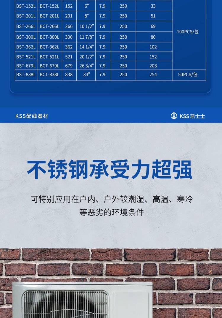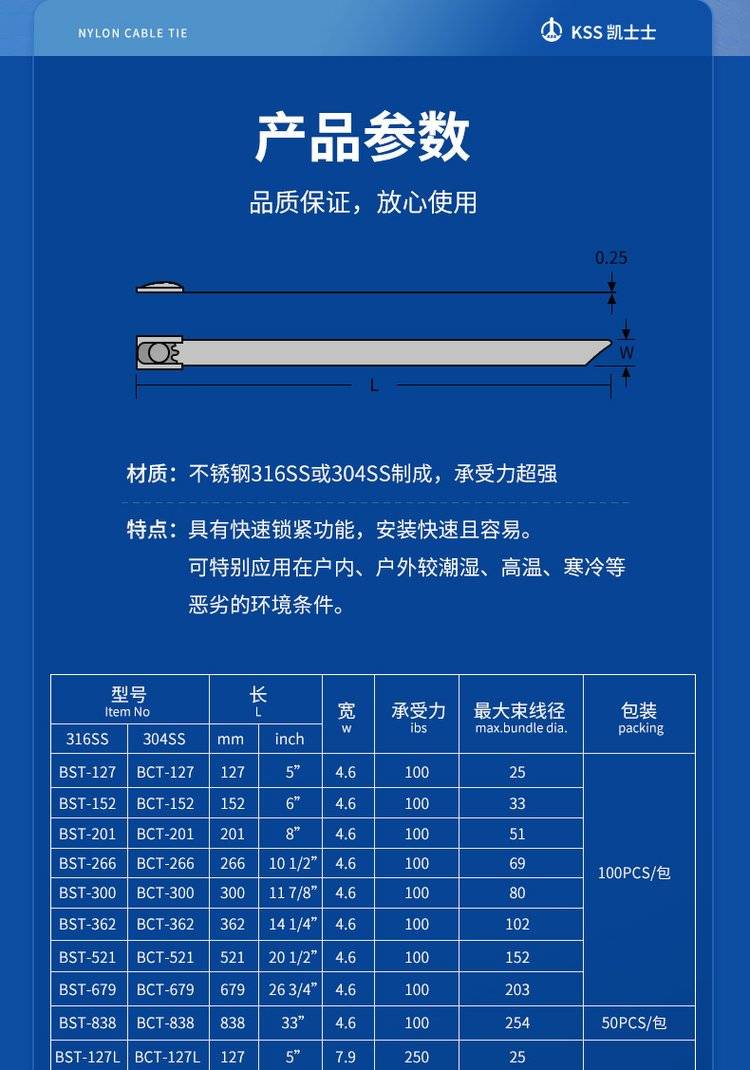 凯士士KSS 316不锈钢防锈金属扎线带 耐腐蚀耐高低温 UL认证