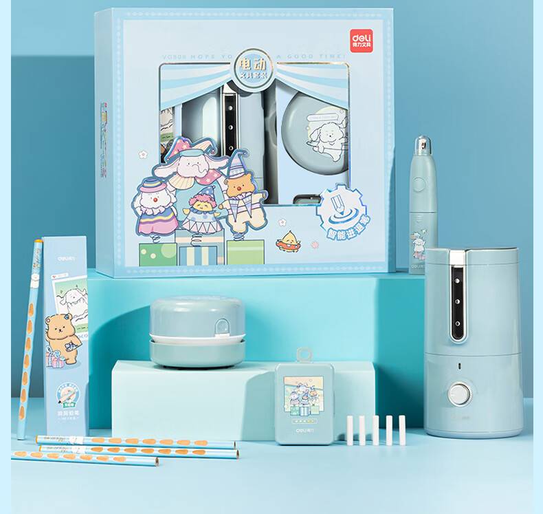 DELI VG808 儿童节礼物9件套 小学生文具套装 全自动削笔机
