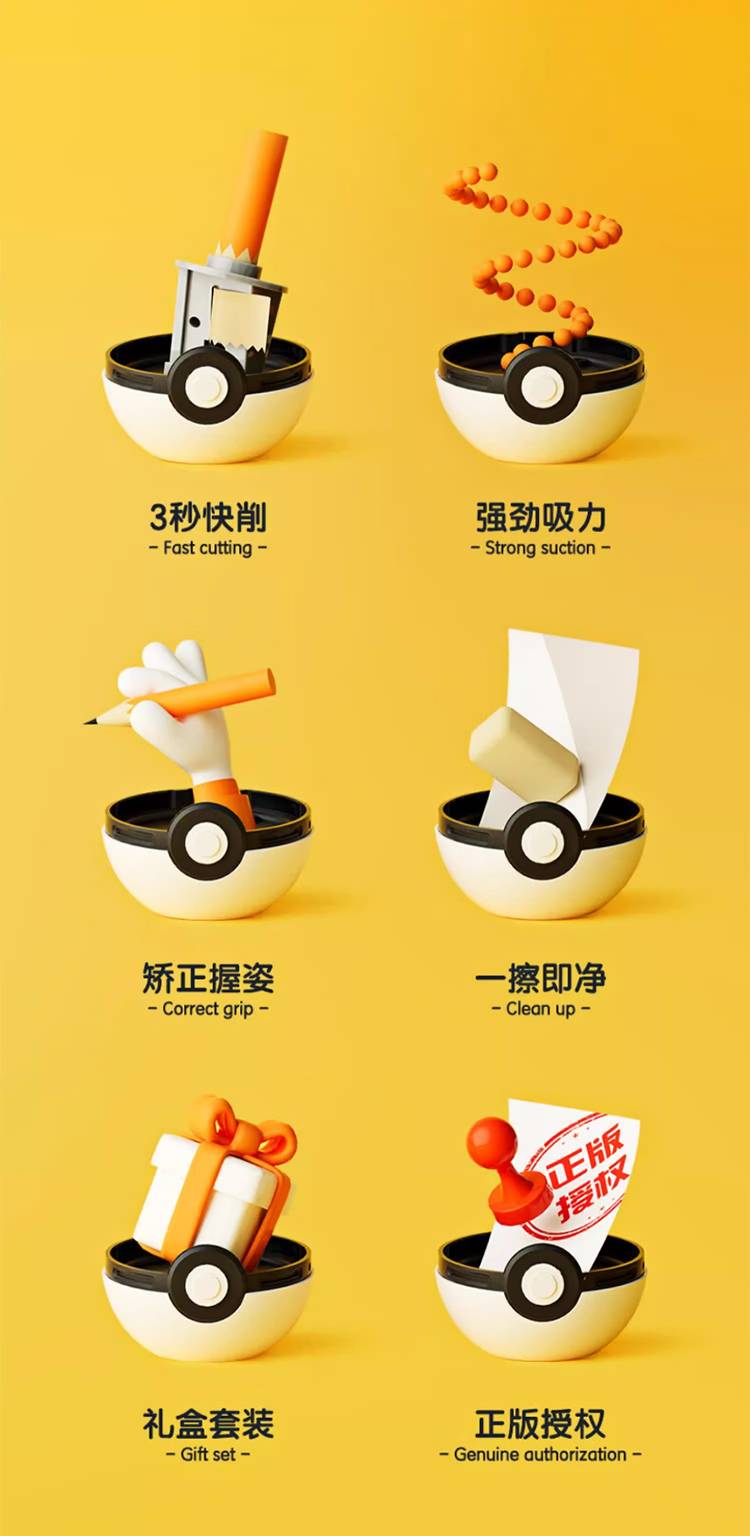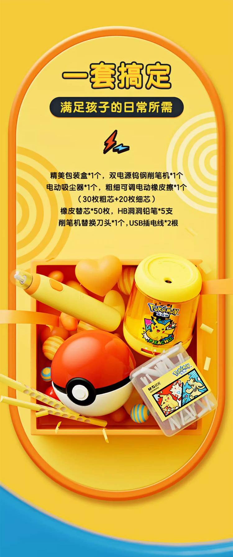 晨光宝可梦联名电动文具套装 10件套含削笔机吸尘器橡皮擦