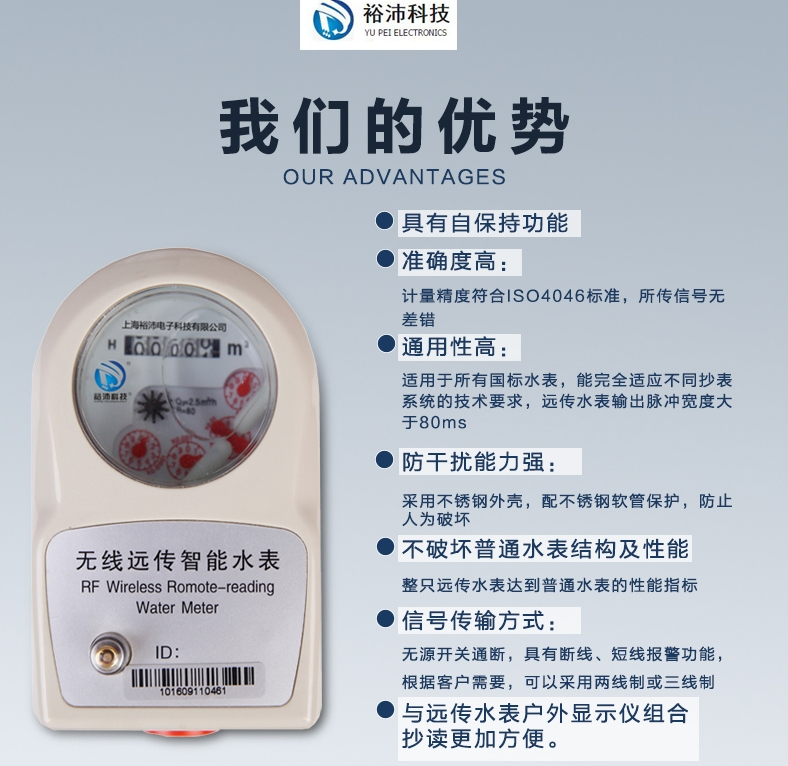 中国 裕沛科技 光电直读有线远传水表 采用M-BUS总线通讯