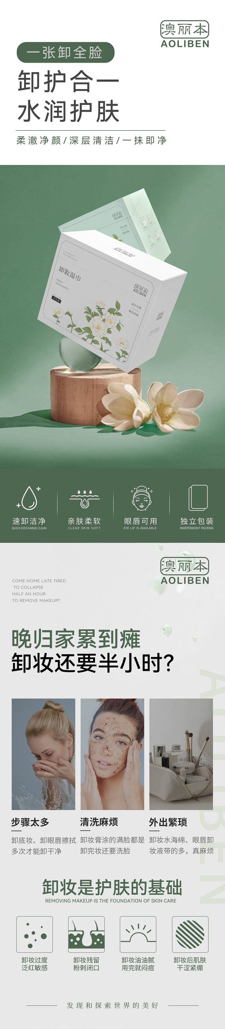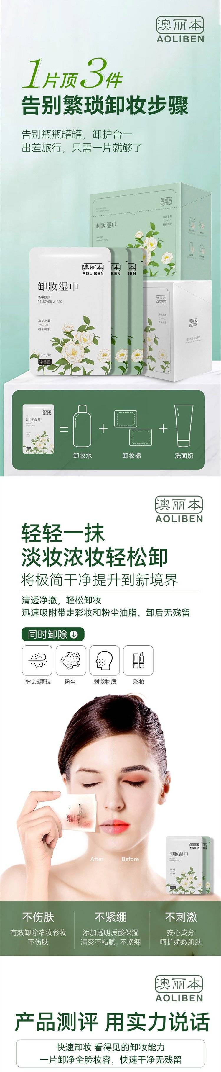 澳丽本卸妆湿巾亲肤柔软脸部眼唇可用一片10ml独立包装