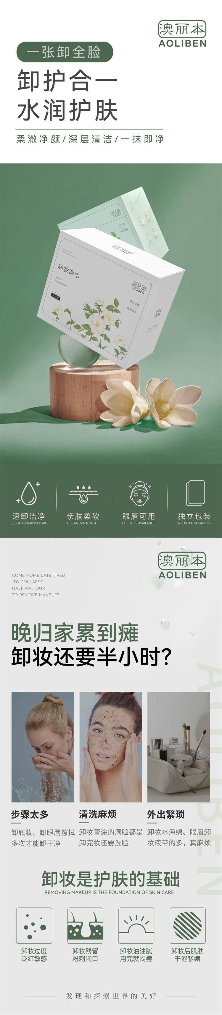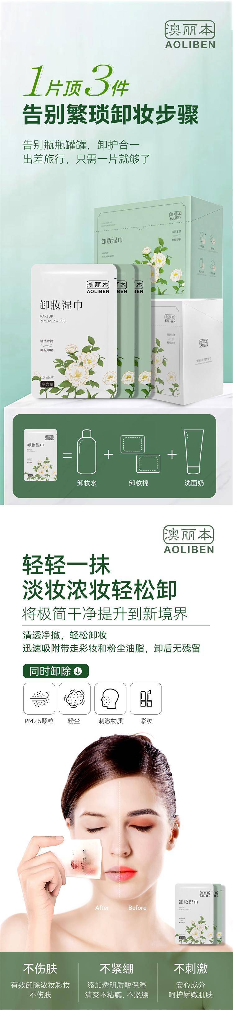 澳丽本 卸妆湿巾 卸护合一 水润护肤 独立包装 方便携带