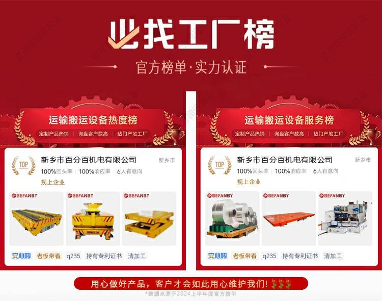 低压轨道供电车间转运用电动平车搬运飞轮壳灵活转弯有轨过跨平车