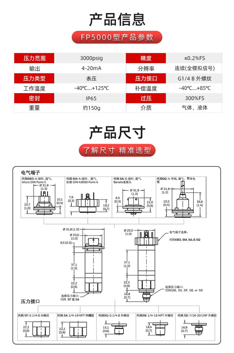 Honeywell霍尼韦尔 FP5000型压力传感器/变送器 060-R185-09-01