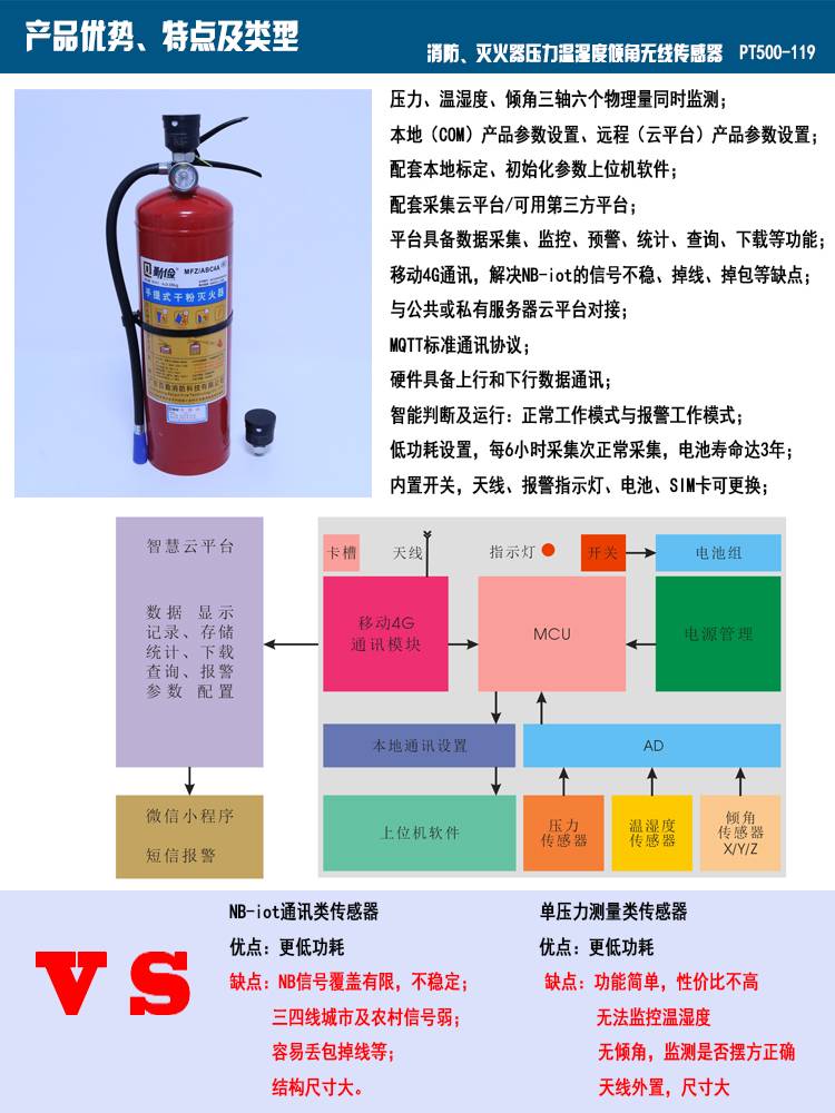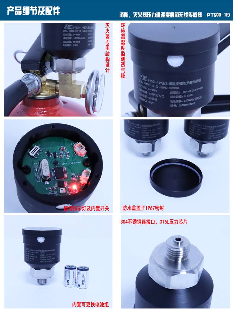 普量 温湿压一体 供暖系统监控预警 PT500-119 消防无线传感器