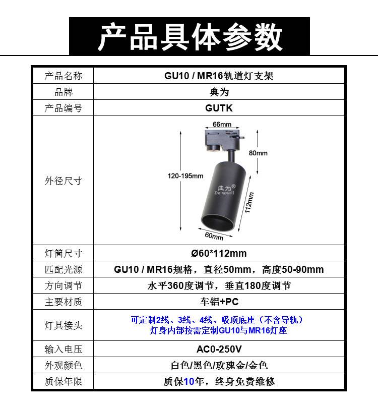 典为GU10轨道灯支架灯罩家装餐厅店铺玫瑰金色灯杯外壳灯座