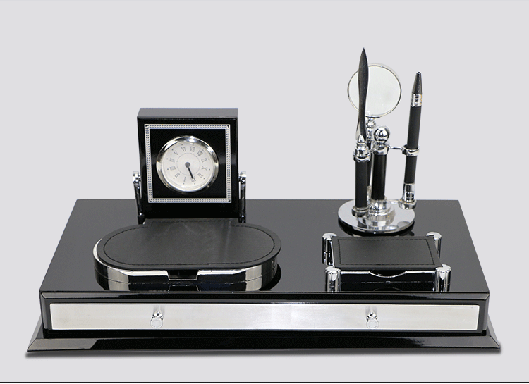 焕环祥工艺 老板桌笔筒面摆台定制 木质台历架地球仪摆件定做