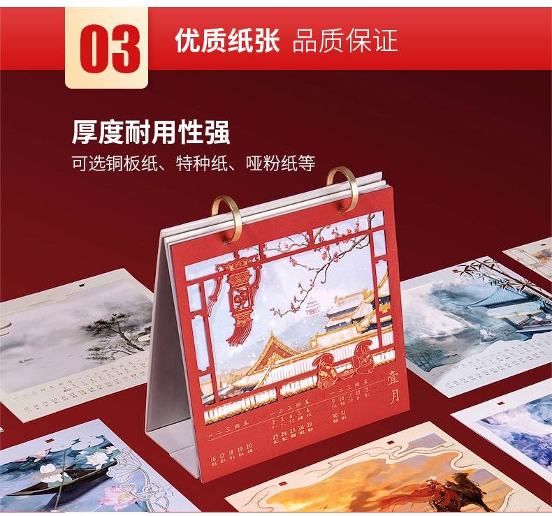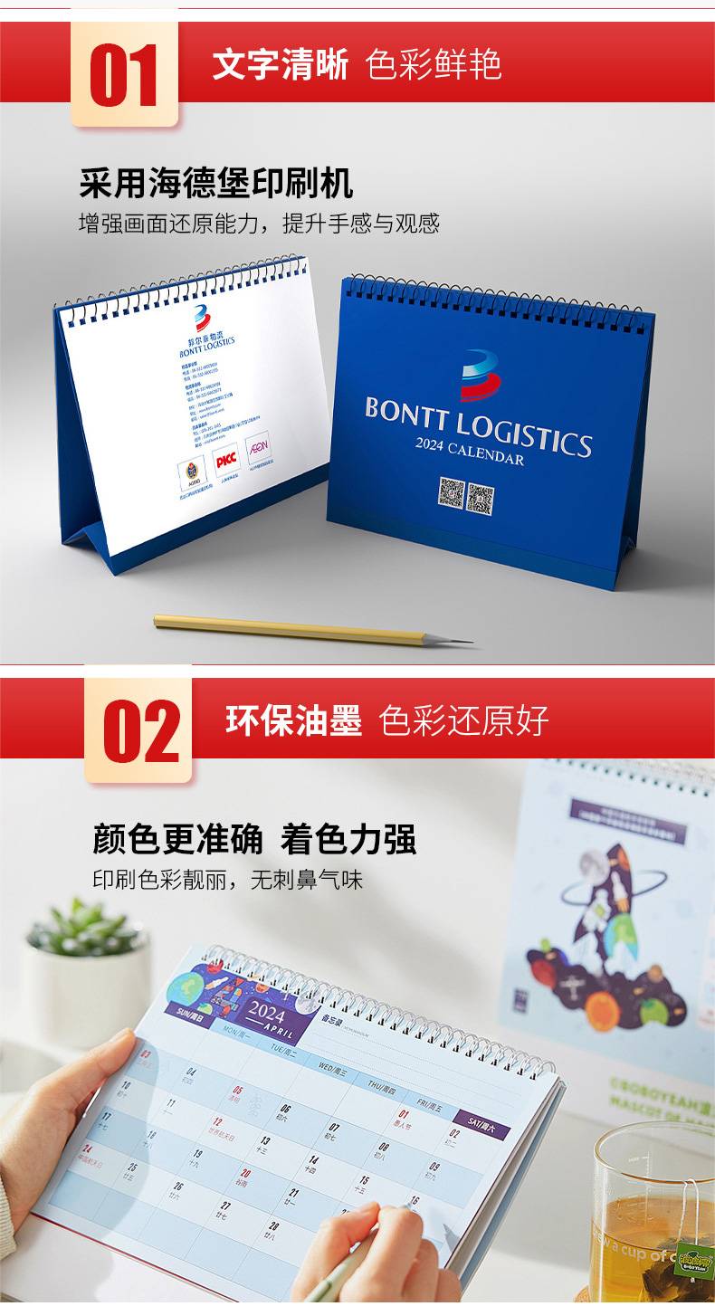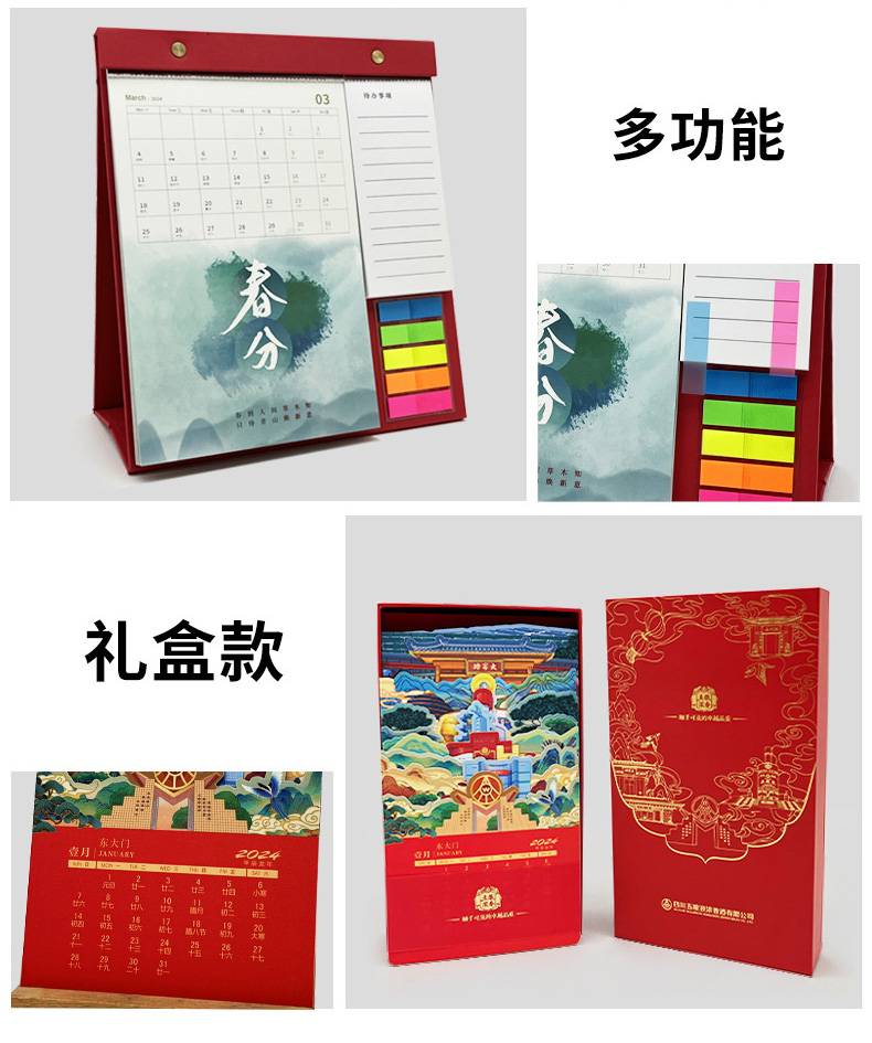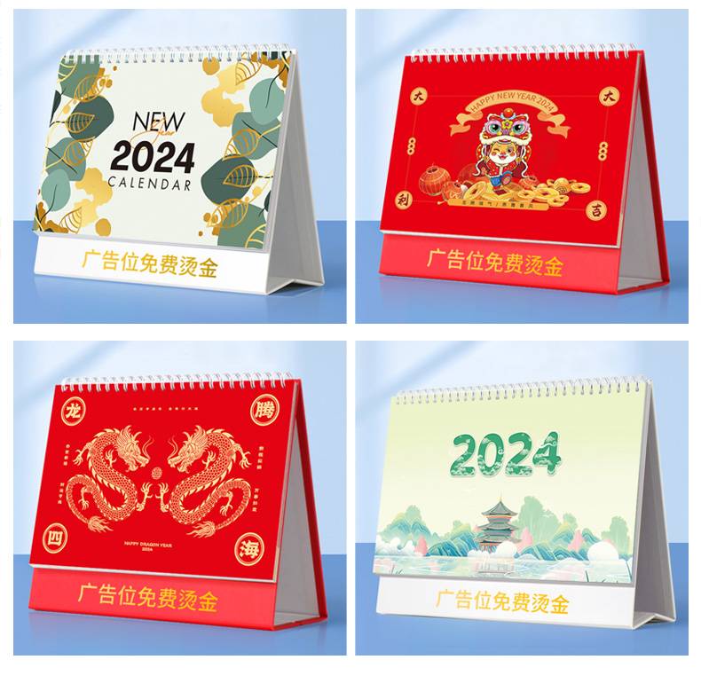 台历制作厂 2024龙年横架立体工艺烫金桌面竖版日历定制广告LOGO